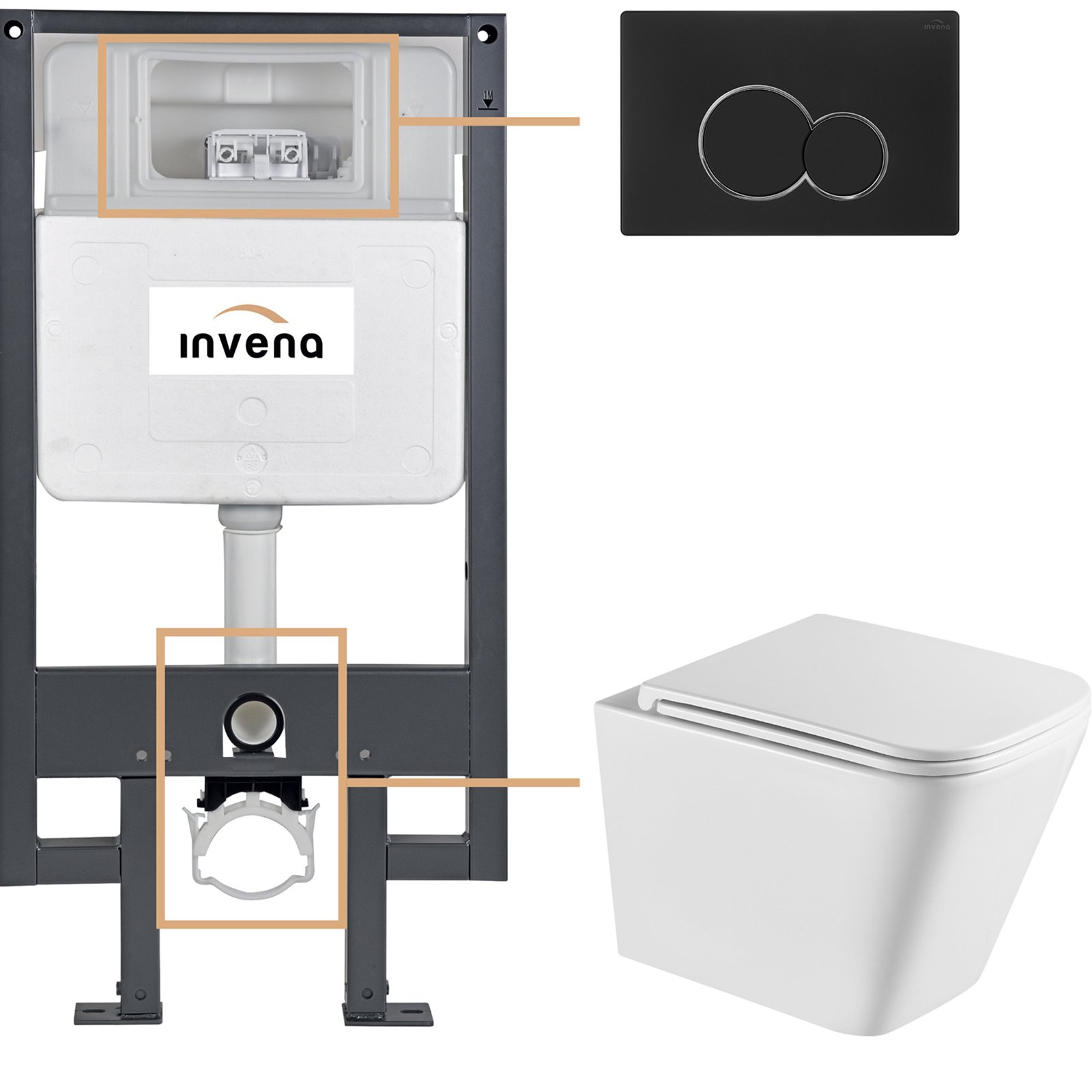 INVENA Zestaw podtynkowy 50 mechaniczny, miska FLORINA, deska, przycisk 601 czarny CK-94-014