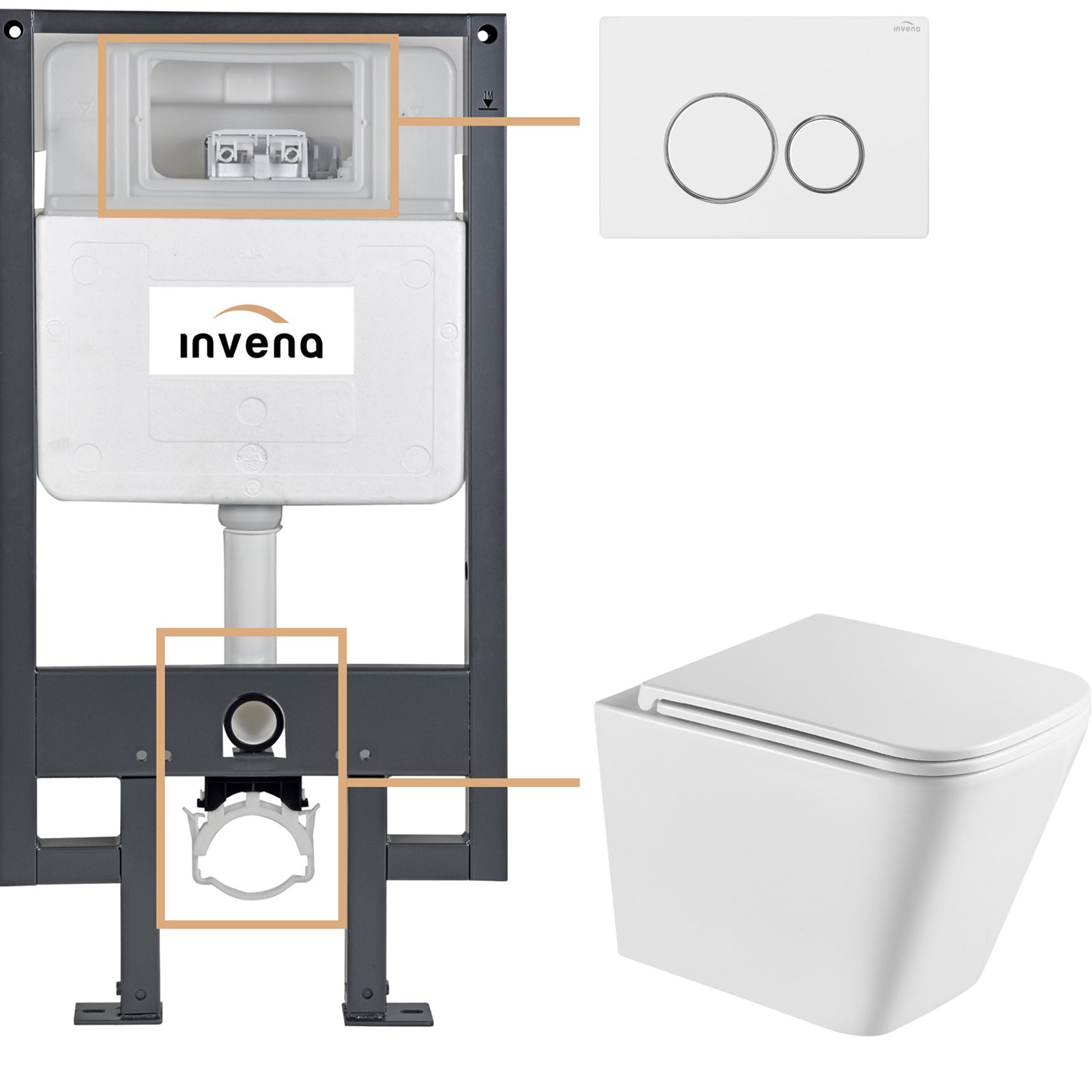 INVENA Zestaw podtynkowy 50 mechaniczny, miska FLORINA, deska, przycisk 604 biały CK-94-042