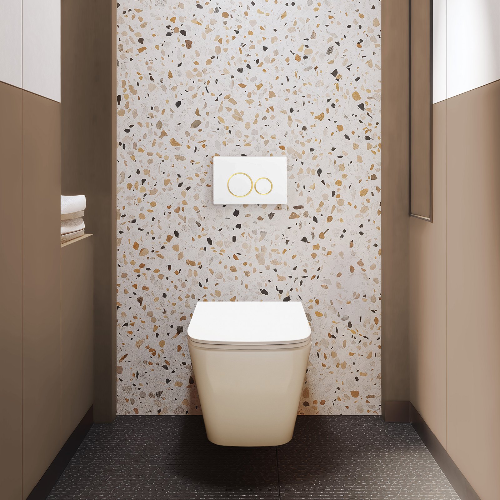 Zestaw podtynkowy WC Florina to propozycja dla osób ceniących luksus i elegancję w każdym detalu. Kwadratowa miska wisząca z deską wolnoopadającą i systemem łatwego wypinania to funkcjonalne i wygodne rozwiązanie. Cichy system QFS oraz oszczędne spłukiwanie 3/6 l sprawiają, że zestaw łączy w sobie komfort, ekologię i nowoczesne technologie. Stelaż podtynkowy o nośności 400 kg, regulowane nogi i szczelny, jednoczęściowy zbiornik zapewniają stabilność i niezawodność. Biało-złoty przycisk 604 dodaje wnętrzu wyjątkowego prestiżu i elegancji.