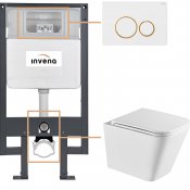INVENA Zestaw podtynkowy 50 mechaniczny, miska FLORINA, deska, przycisk 604 biało-złoty CK-94-04