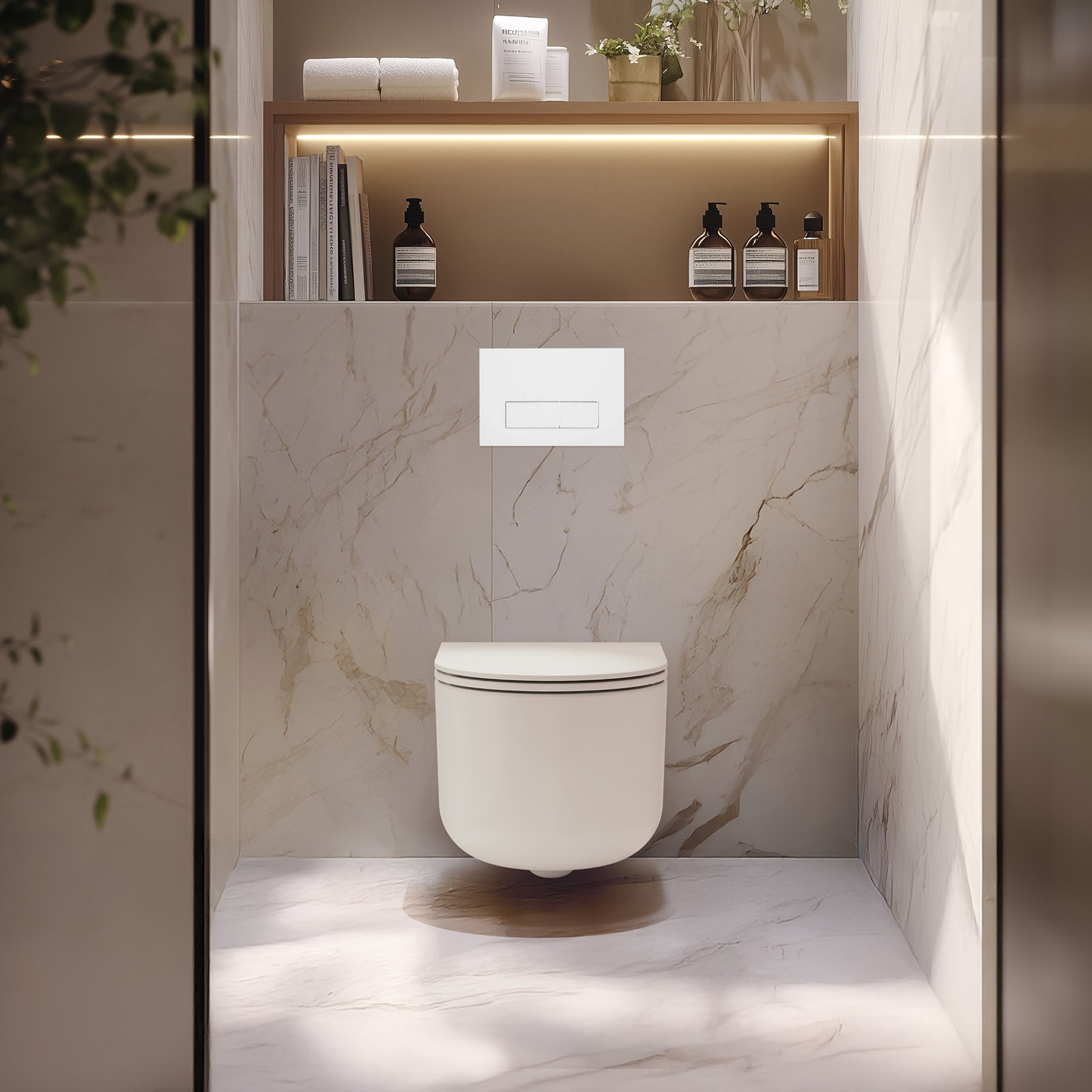 INVENA Zestaw podtynkowy 50 mechaniczny, miska KORFU, deska, przycisk 603 biały CK-95-032