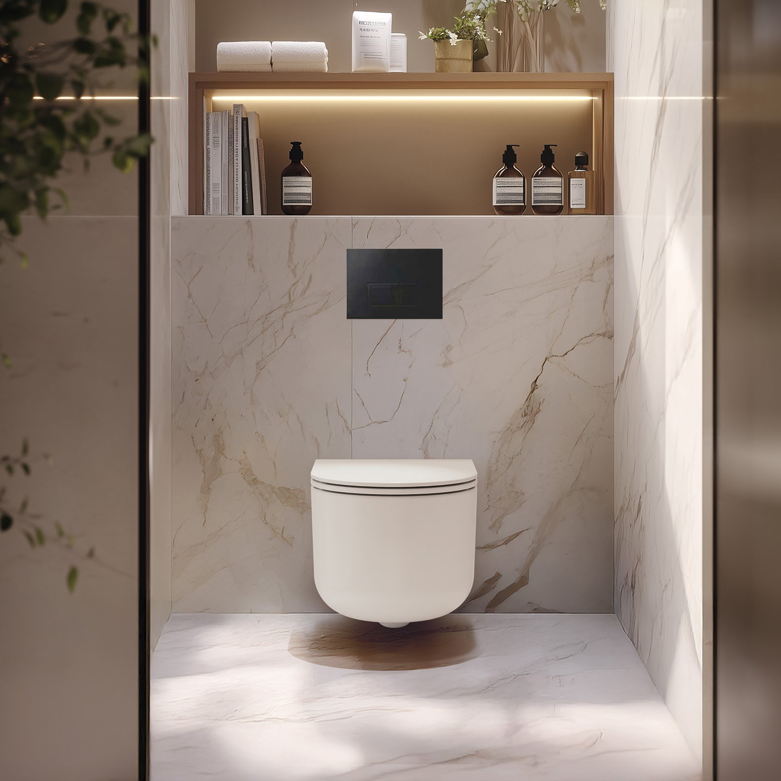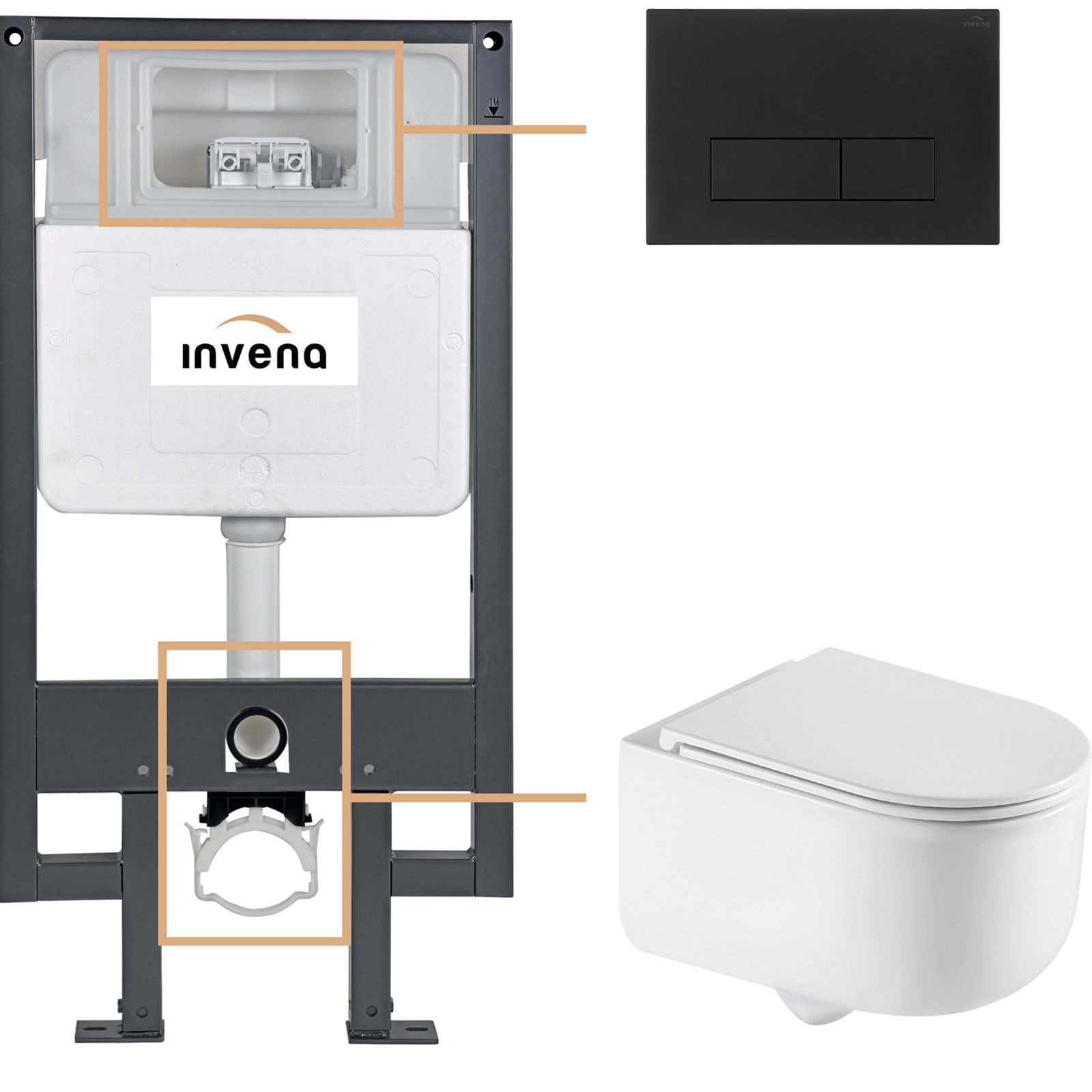 INVENA Zestaw podtynkowy 50 mechaniczny, miska KORFU, deska, przycisk 603 czarny CK-95-034
