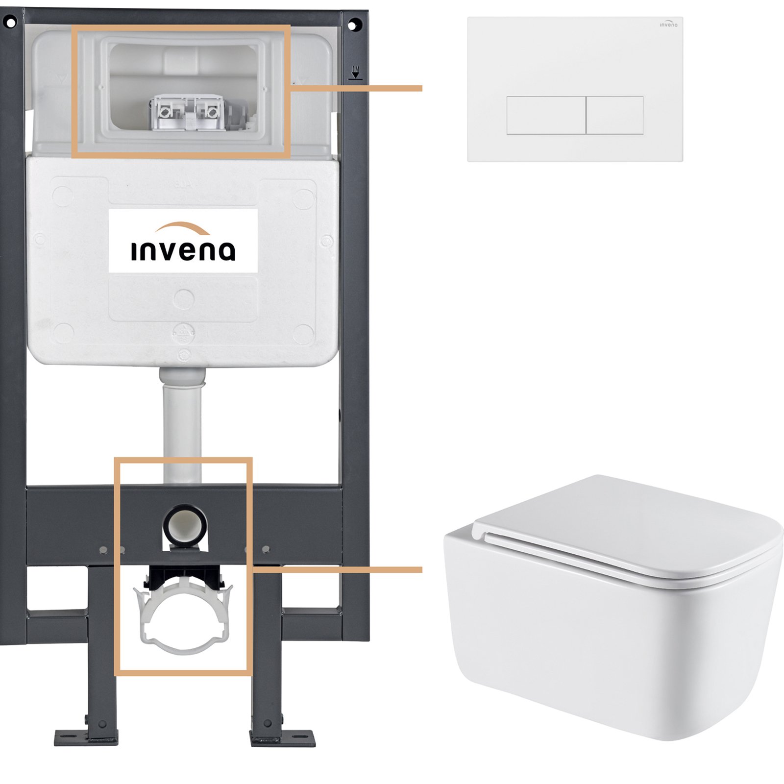 INVENA Zestaw podtynkowy 50 mechaniczny, miska MALAGA, deska, przycisk 603 biały CK-96-032