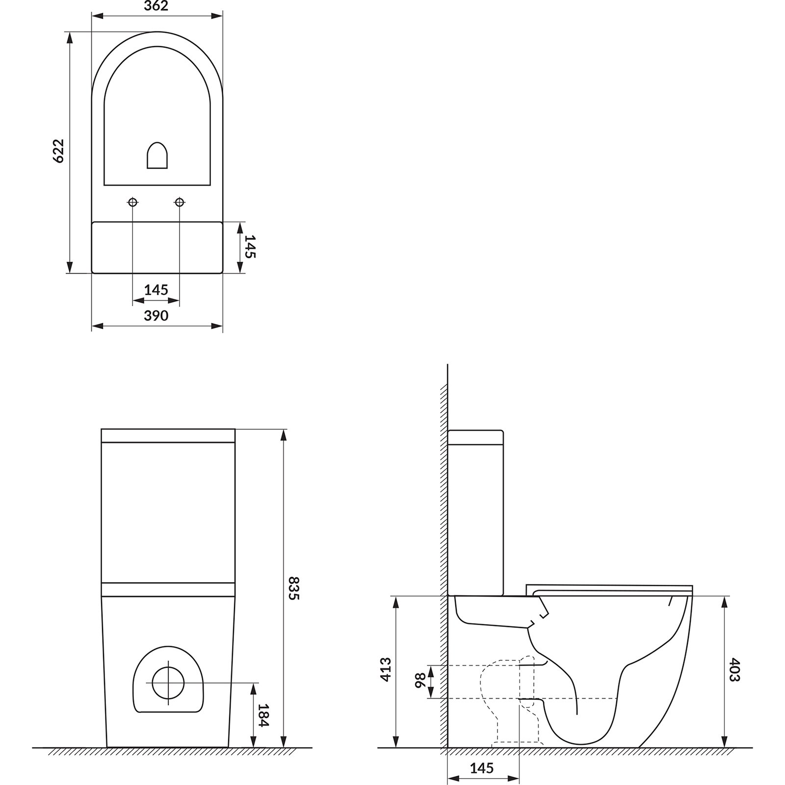 - full back-to-wall- WC kompakt przylega do ściany na całej wysokości