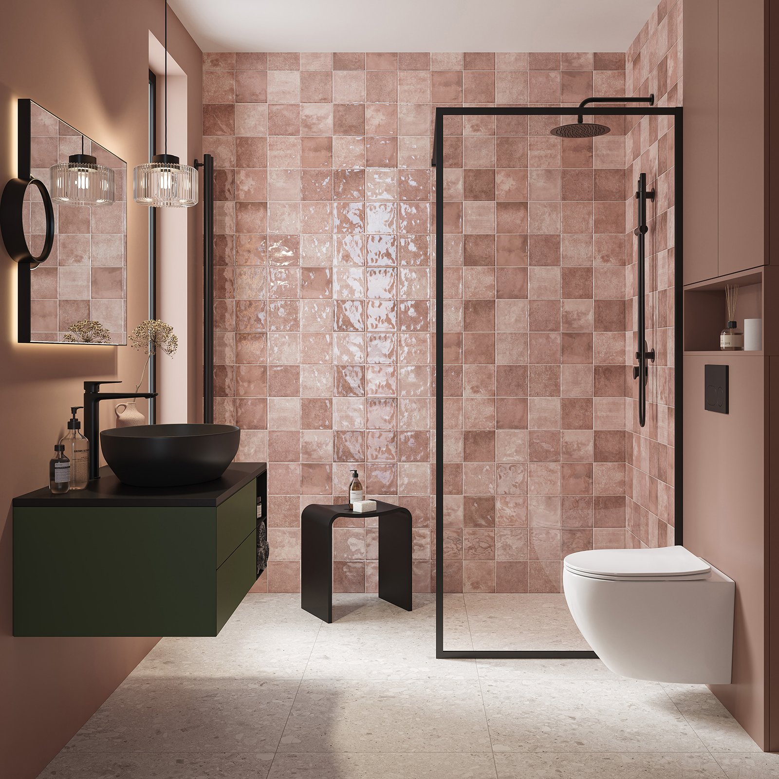 Powierzchnia płytek ściennych pokryta jest cienką warstwą szkliwa, co zabezpiecza je przed zaplamieniem, ułatwia utrzymanie w czystości oraz zapewnia maksymalną higienę podczas użytkowania. Gwarantuje też zachowanie pierwotnego koloru w całym okresie eksploatacji.