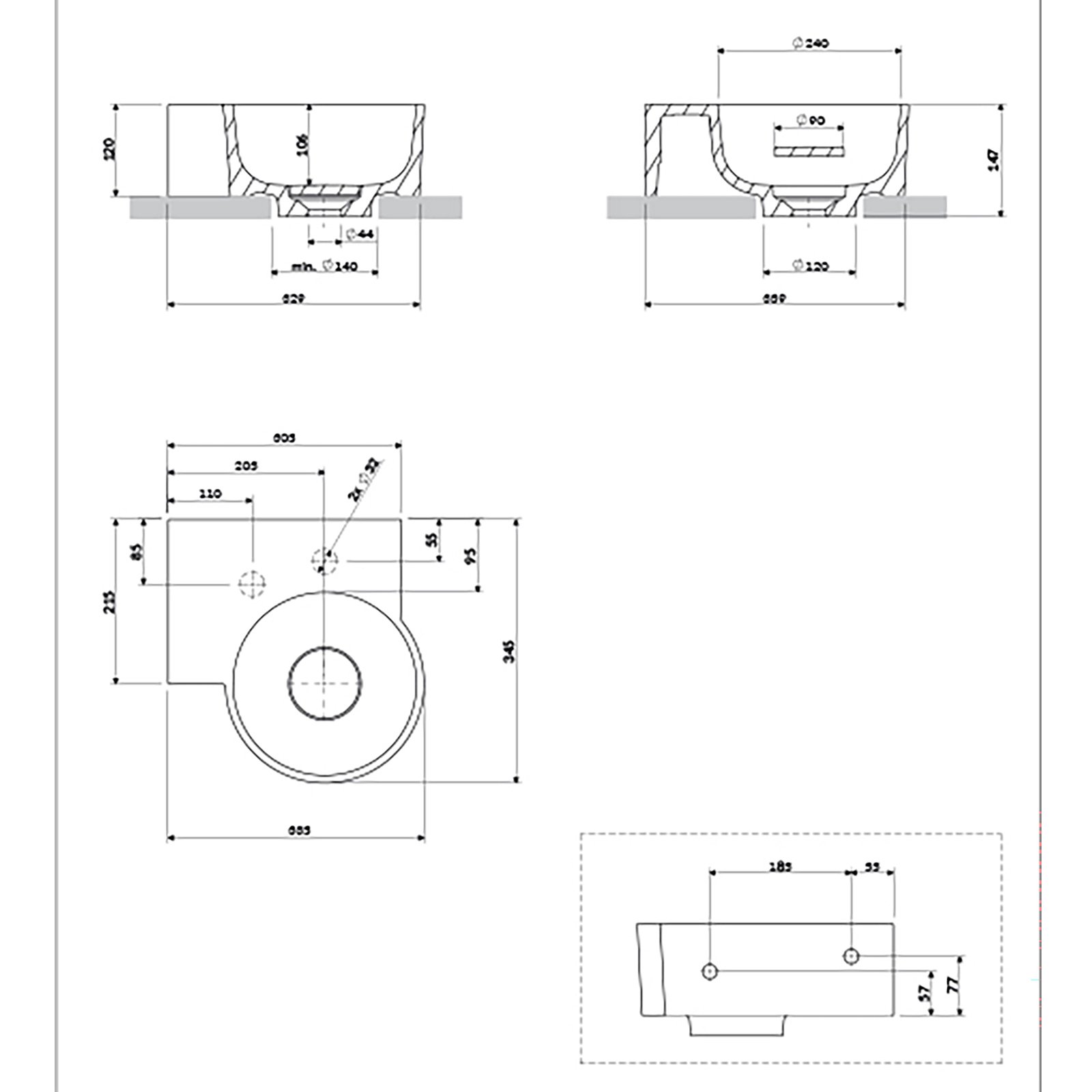 - w przypadku montażu nablatowego wymagane jest wycięcie okręgu w blacie o średnicy 140 mm