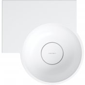 Umywalka z kolekcji OMNIRES OVO charakteryzuje się minimalistyczną, wyrazistą formą o doskonałych proporcjach. Powstały z zabawy geometrią kształt tworzą okrągła misa połączona z prostokątną, funkcjonalną półką - idealnym miejscem do montażu baterii, a także do odstawienia kosmetyków, czy innych niezbędnych akcesoriów. Harmonijnie wyprofilowane ścianki zostały wykończone płaskim, podkreślającym formę rantem, a idealnie dopasowana maskownica odpływu gwarantuje najwyższą estetykę. Od spodu umywalki zaprojektowano dyskretne, fabrycznie podcienione punkty, które wskazują miejsca na wykonanie otworów pod baterię lub dozownik, umożliwiając elastyczne dopasowanie armatury do indywidualnych potrzeb.
