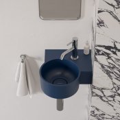 OVO w kolorze midnight blue (RAL5003) to umywalka w wyrazistym odcieniu granatu, o aksamitnej w dotyku, matowej powierzchni.