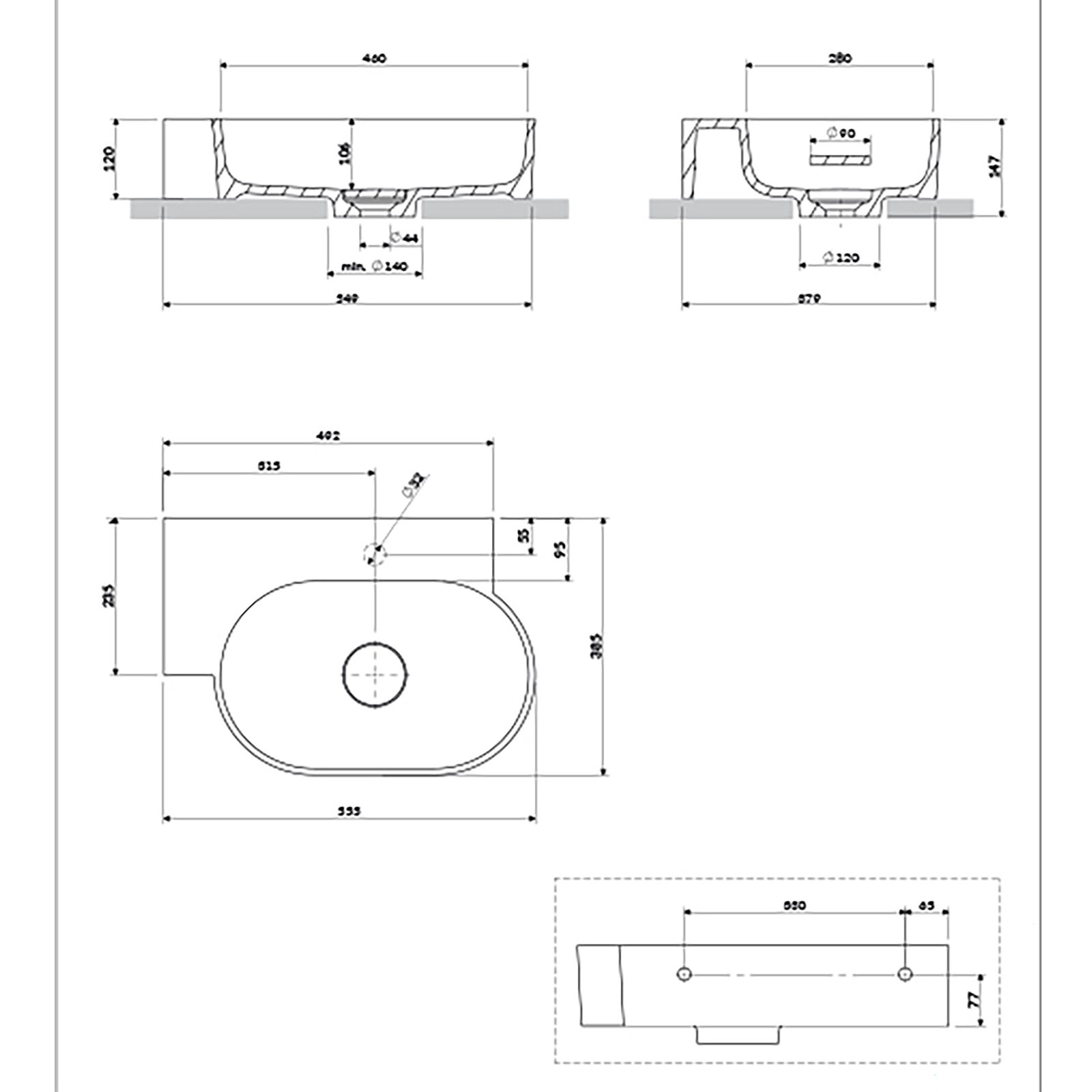 - w przypadku montażu nablatowego wymagane jest wycięcie okręgu w blacie o średnicy 140 mm