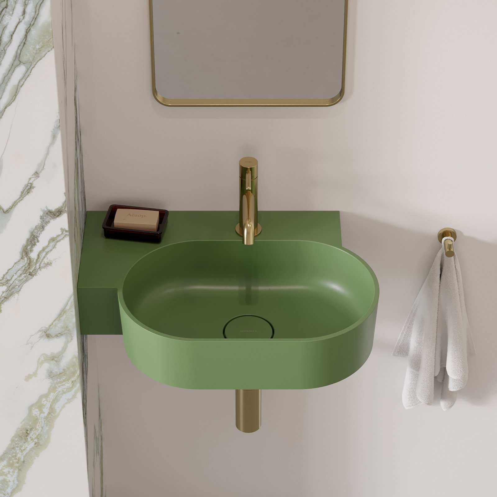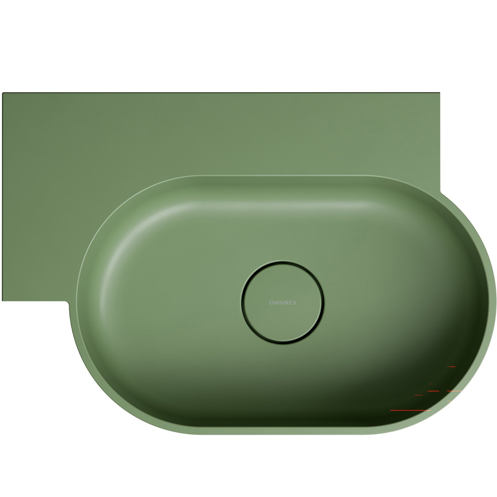 Umywalka nablatowa OVO M+ wisząca-lewa 55x38 cm olive mat.