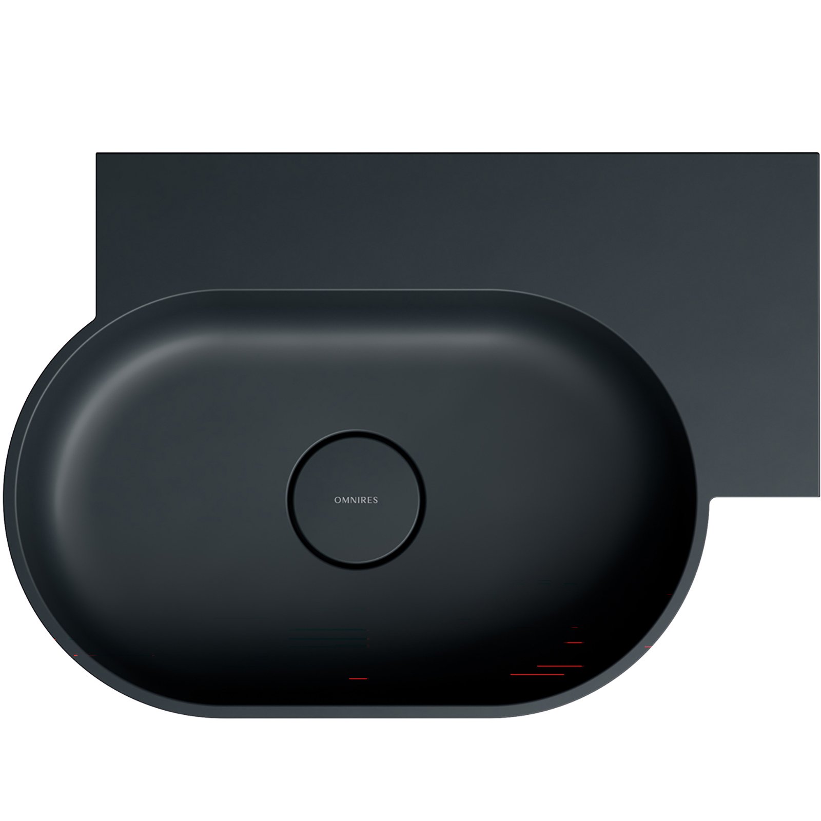 Umywalka z kolekcji OMNIRES OVO charakteryzuje się minimalistyczną, wyrazistą formą o doskonałych proporcjach. Powstały z zabawy geometrią kształt tworzą dwa przeciwległe półokręgi umywalki, połączone z prostokątną, funkcjonalną półką – idealnym miejscem do montażu baterii, a także do odstawienia kosmetyków czy innych niezbędnych akcesoriów. Harmonijnie wyprofilowane ścianki zostały wykończone płaskim, podkreślającym formę rantem, a idealnie dopasowana maskownica odpływu gwarantuje najwyższą estetykę. Od spodu umywalki zaprojektowano dyskretny, fabrycznie podcieniony punkt, który wskazuje miejsce na wykonanie otworu pod baterię.