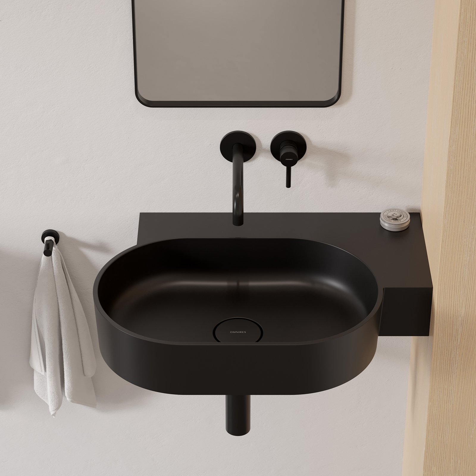 OVO w kolorze black lava (RAL9005) to umywalka w wyrazistym odcieniu czerni, o aksamitnej w dotyku, matowej powierzchni.