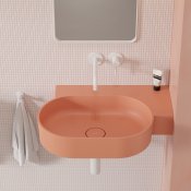 OVO w kolorze coral (RAL3012) to umywalka w subtelnym odcieniu różu, o aksamitnej w dotyku, matowej powierzchni.