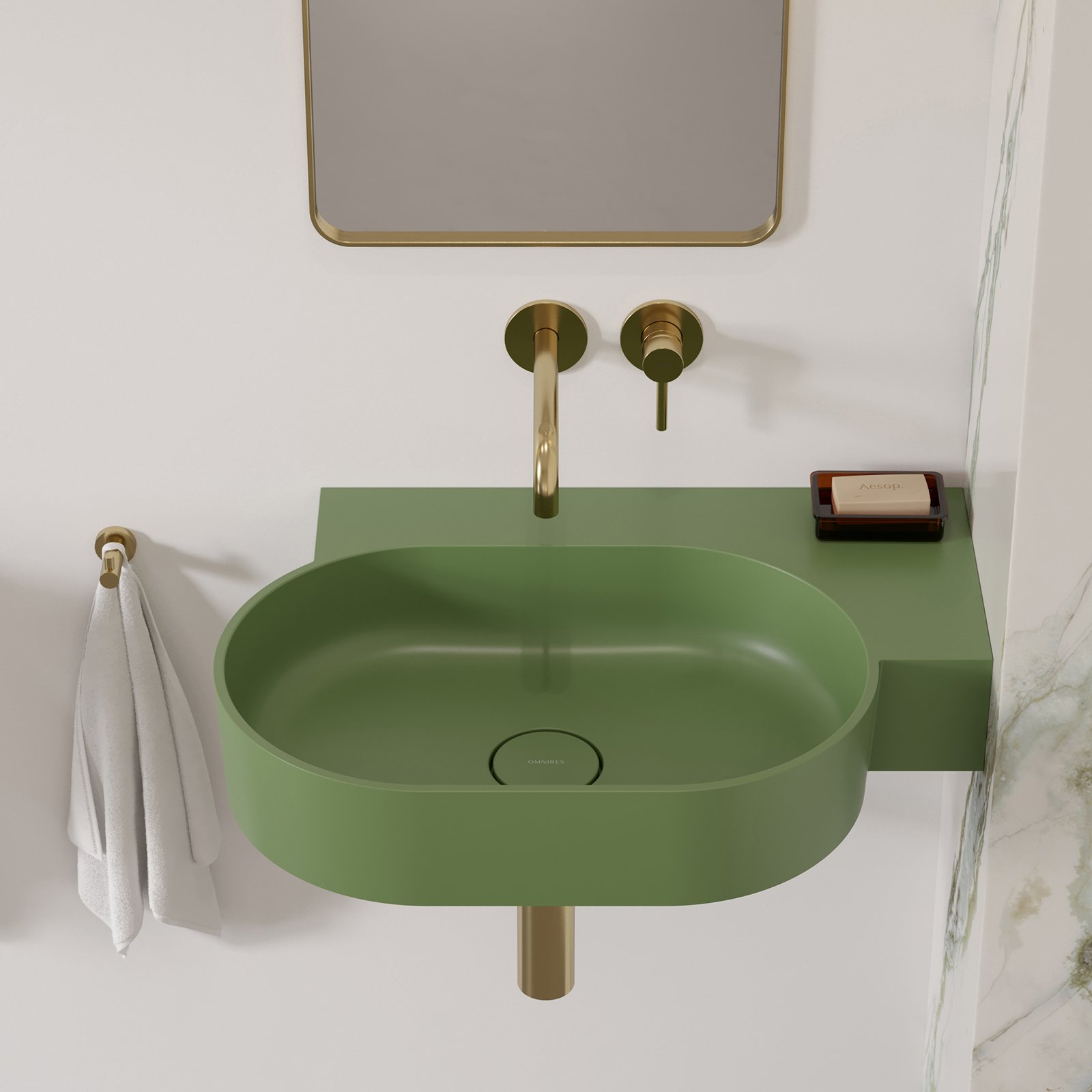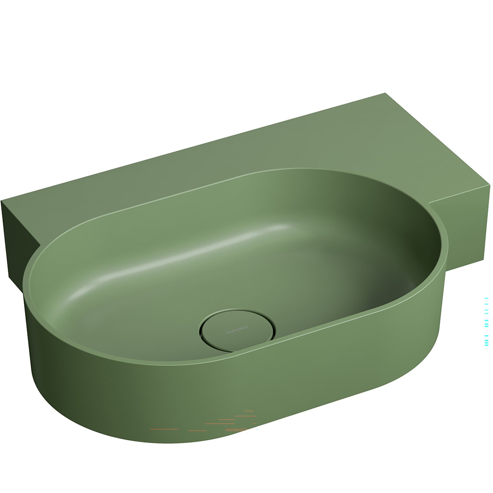 Umywalka nablatowa OVO M+ wisząca-prawa 64x44 cm olive mat.