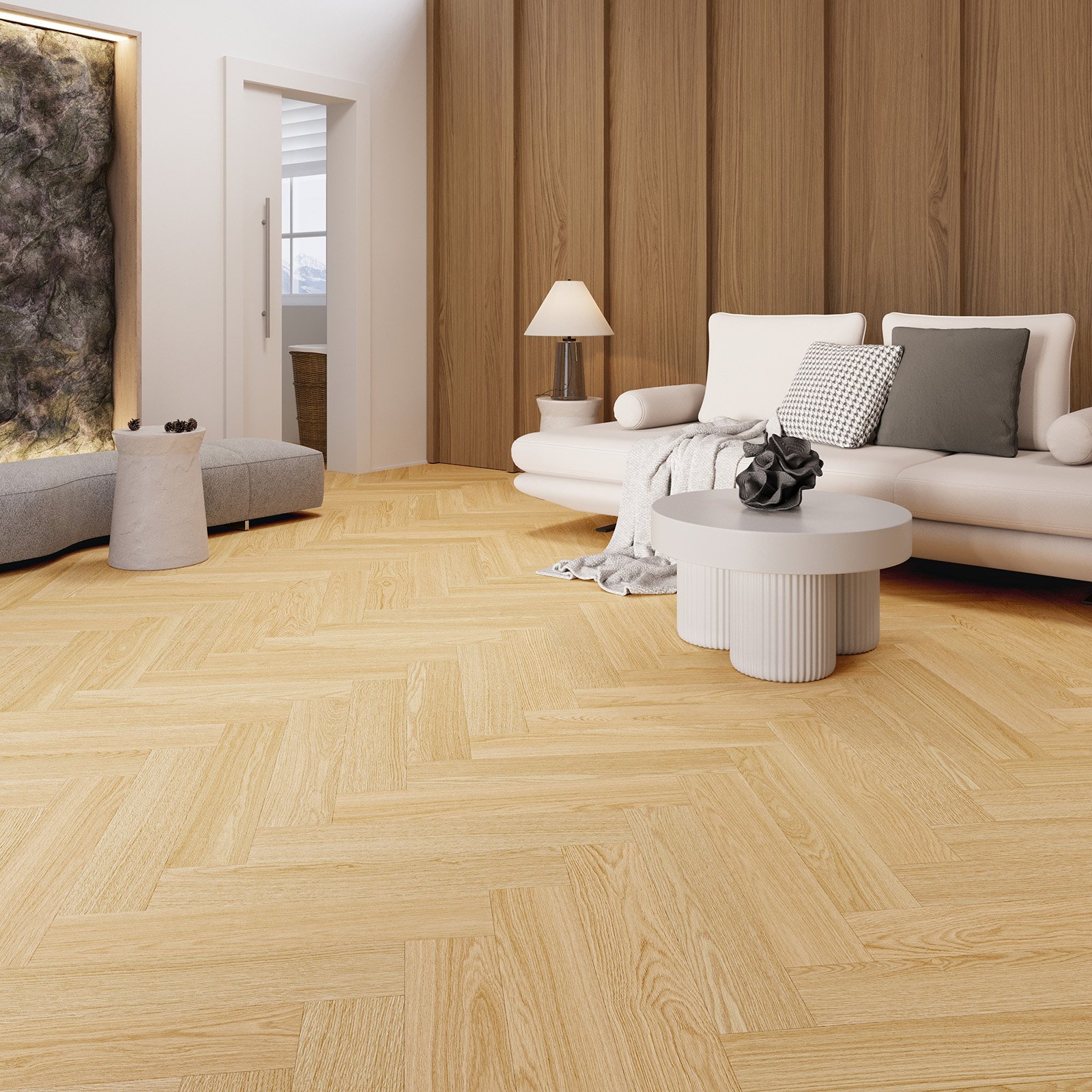 Trwałość na lata – dzięki technologii SPC (Stone Polymer Composite) oraz klasie użyteczności 23-33, panele doskonale sprawdzą się zarówno w domach, jak i w pomieszczeniach komercyjnych o średnim natężeniu ruchu.