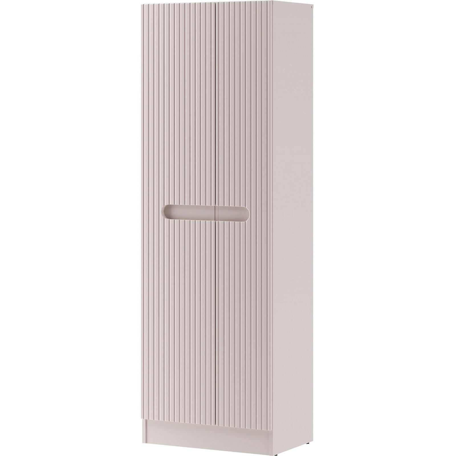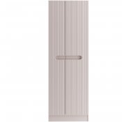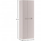 Dwudrzwiowy słupek z kolekcji Nova Cashmere przyciąga wzrok eleganckim minimalizmem, wyrazistymi pionowymi ryflowaniami i perfekcyjnie zintegrowanym podchwytem, który subtelnie podkreśla ponadczasowy charakter mebli. Delikatny dekor Kaszmirowy Beż wprowadza do wnętrza łagodną, ciepłą atmosferę. Szafka o wysokości 180 cm z czterema półkami i miejscem do przechowywania akcesoriów gospodarczych to praktyczne rozwiązanie, które oferuje sporo miejsca i pomaga utrzymać porządek w estetyczny sposób. Wykonana z płyty laminowanej i płyty MDF, zapewnia trwałość i estetykę na lata. Zastosowany system cichego domykania podnosi komfort codziennego użytkowania i podkreśla wysoką jakość wykonania.