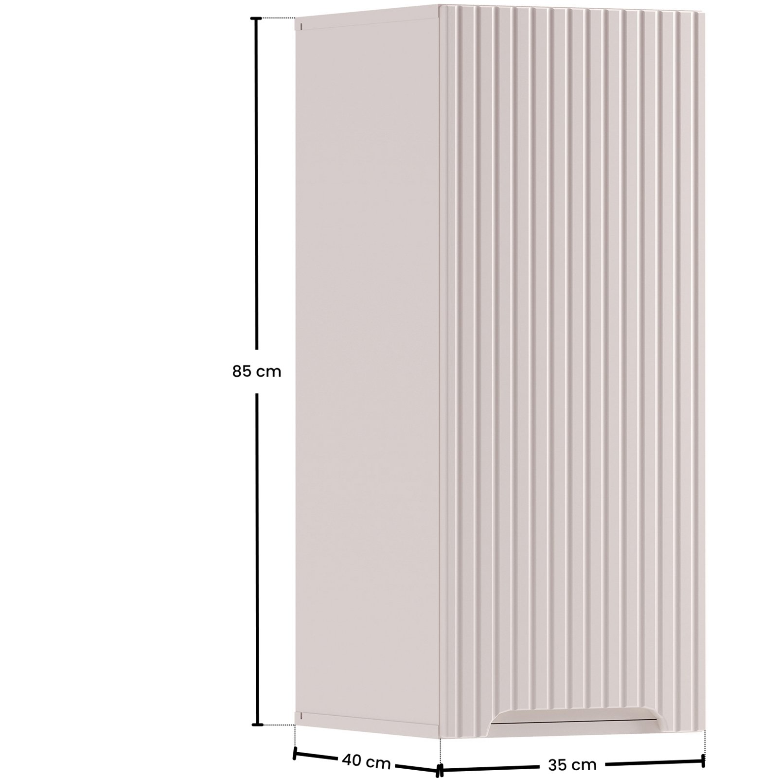 Szafka górna o szerokości 35 cm z kolekcji Nova Cashmere przyciąga wzrok eleganckim minimalizmem. Delikatny dekor Kaszmirowy Beż wprowadza do wnętrza ciepłą atmosferę. Kompatybilność z pozostałymi seriami Nova – w dekorach dębu Coast Evoke, bieli, czerni oraz niebieskiego Denimu – pozwala na pełną swobodę aranżacyjną i tworzenie spójnych, ale niepowtarzalnych przestrzeni.