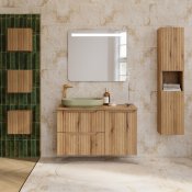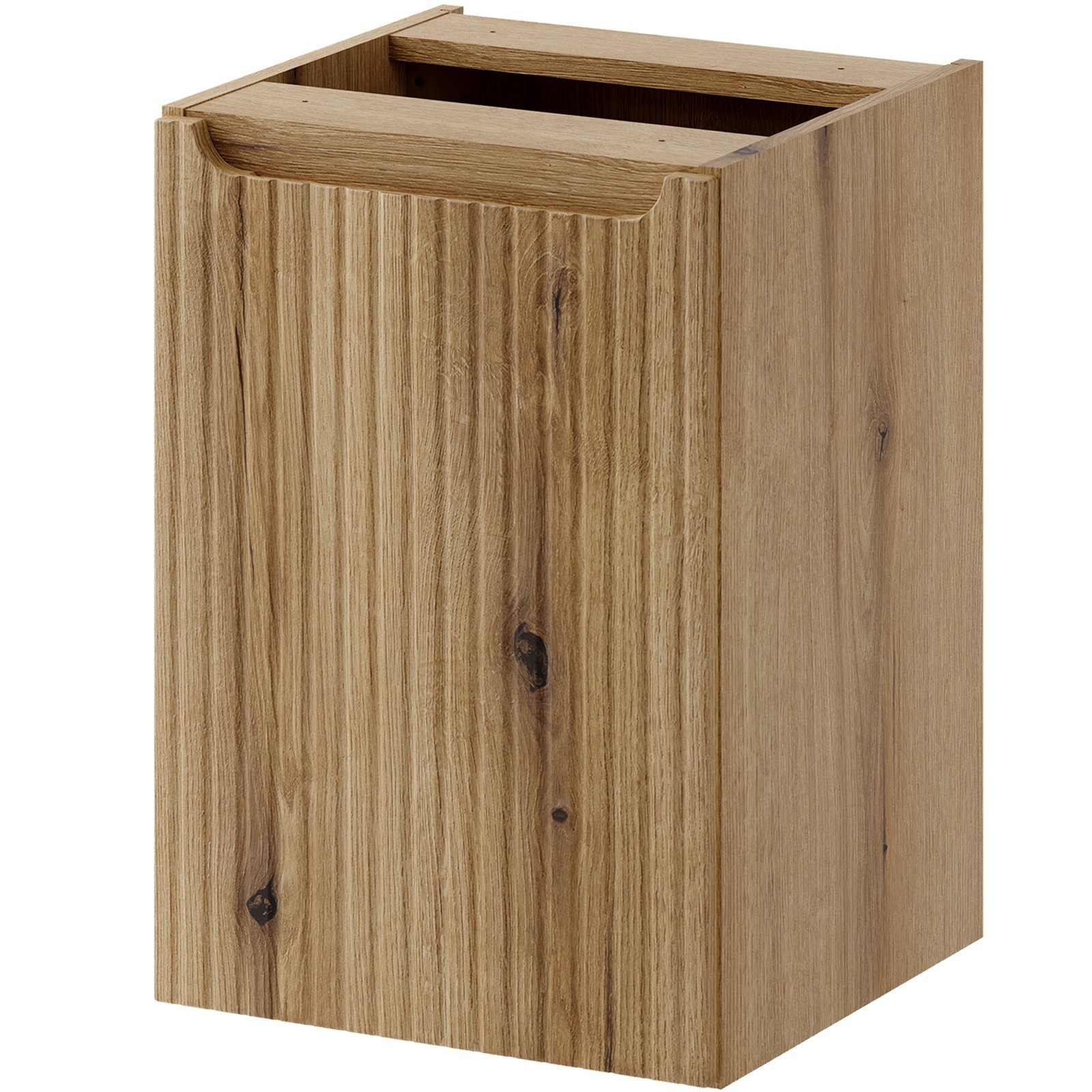 Szafka łazienkowa o szerokości 40 cm z koszem na pranie z kolekcji Nova Coast Evoke przyciąga wzrok eleganckim minimalizmem, który subtelnie podkreśla ponadczasowy charakter mebli. Ciepły odcień i naturalna struktura dekoru Dąb Coast Evoke sprawiają, że wnętrze nabiera miękkiego, przytulnego charakteru. Kompatybilność z pozostałymi seriami Nova – w kolorach kaszmiru, bieli, czerni oraz niebieskiego Denimu – pozwala na pełną swobodę aranżacyjną i tworzenie spójnych, ale niepowtarzalnych przestrzeni.