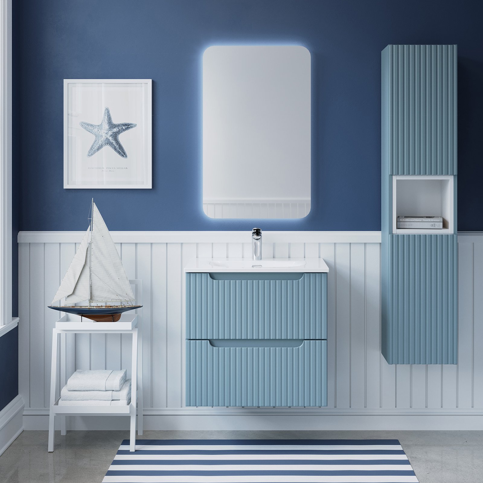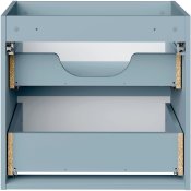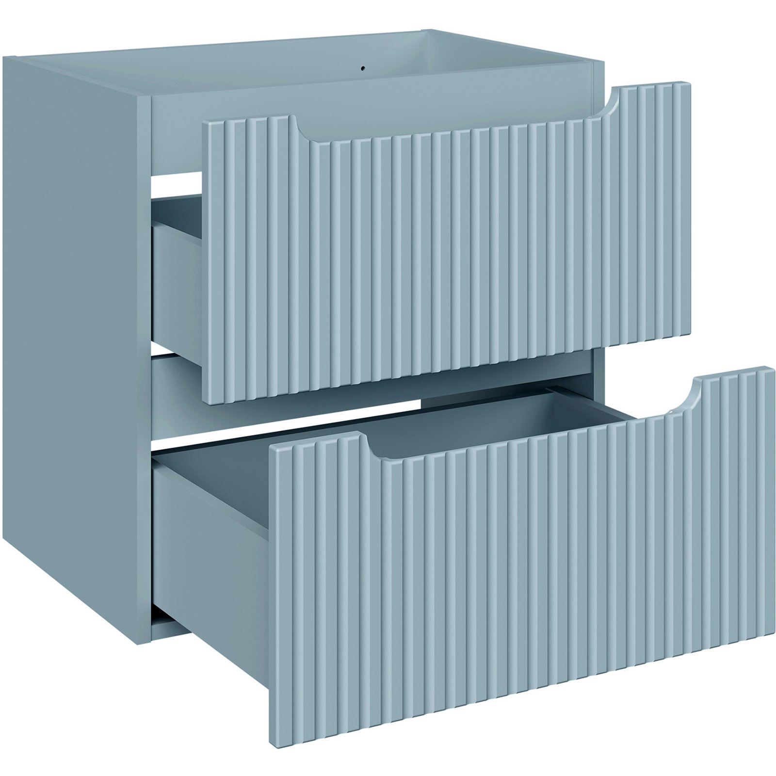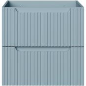 Szafka pod umywalkę z dwiema szufladami z kolekcji Nova Denim z wyrazistymi pionowymi ryflowaniami i perfekcyjnie zintegrowanym podchwytem, który subtelnie podkreśla ponadczasowy charakter mebli. Głęboki, nasycony dekor Denim Suedette nadaje wnętrzu wyrazistości i indywidualnego stylu. Kompatybilność z pozostałymi seriami Nova – w dekorach dębu Coast Evoke, bieli, czerni oraz kaszmiru – pozwala na pełną swobodę aranżacyjną i tworzenie spójnych, ale niepowtarzalnych przestrzeni.