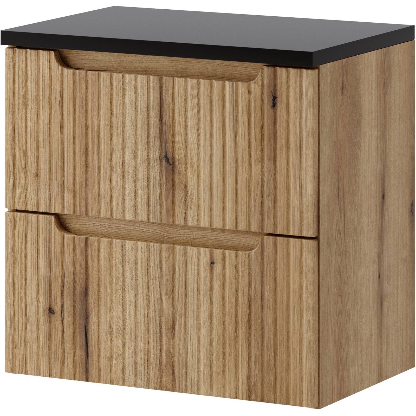 Szafka pod umywalkę 60 cm z dwiema szufladami z kolekcji Nova Coast Evoke przyciąga wzrok eleganckim minimalizmem, wyrazistymi pionowymi ryflowaniami i perfekcyjnie zintegrowanym podchwytem. Ciepły odcień i naturalna struktura sprawiają, że wnętrze nabiera przytulnego charakteru.