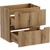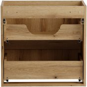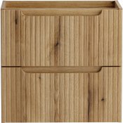 Szafka pod umywalkę 60 cm z dwiema szufladami z kolekcji Nova Coast Evoke przyciąga wzrok eleganckim minimalizmem. Ciepły odcień i naturalna struktura dekoru Dąb Coast Evoke sprawiają, że wnętrze nabiera miękkiego, przytulnego charakteru. Kompatybilność z pozostałymi seriami Nova – w kolorach kaszmiru, bieli, czerni oraz niebieskiego Denimu – pozwala na pełną swobodę aranżacyjną i tworzenie spójnych, ale niepowtarzalnych przestrzeni. Dwie pojemne szuflady oferują sporo miejsca do przechowywania akcesoriów łazienkowych, pomagając utrzymać porządek.