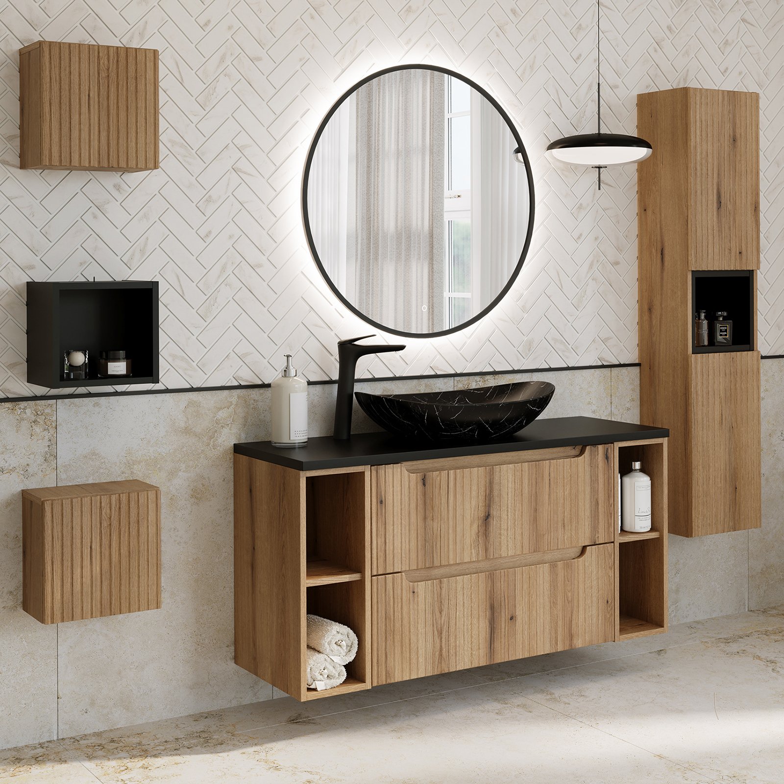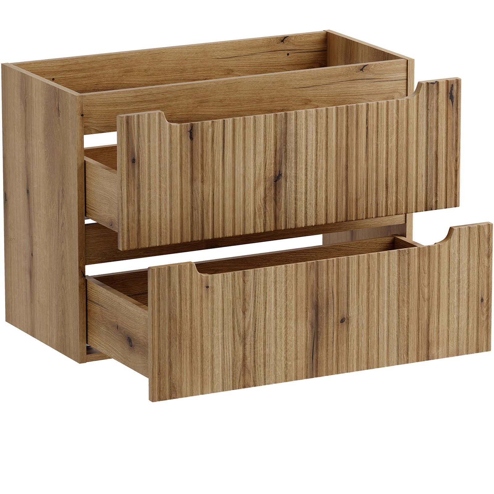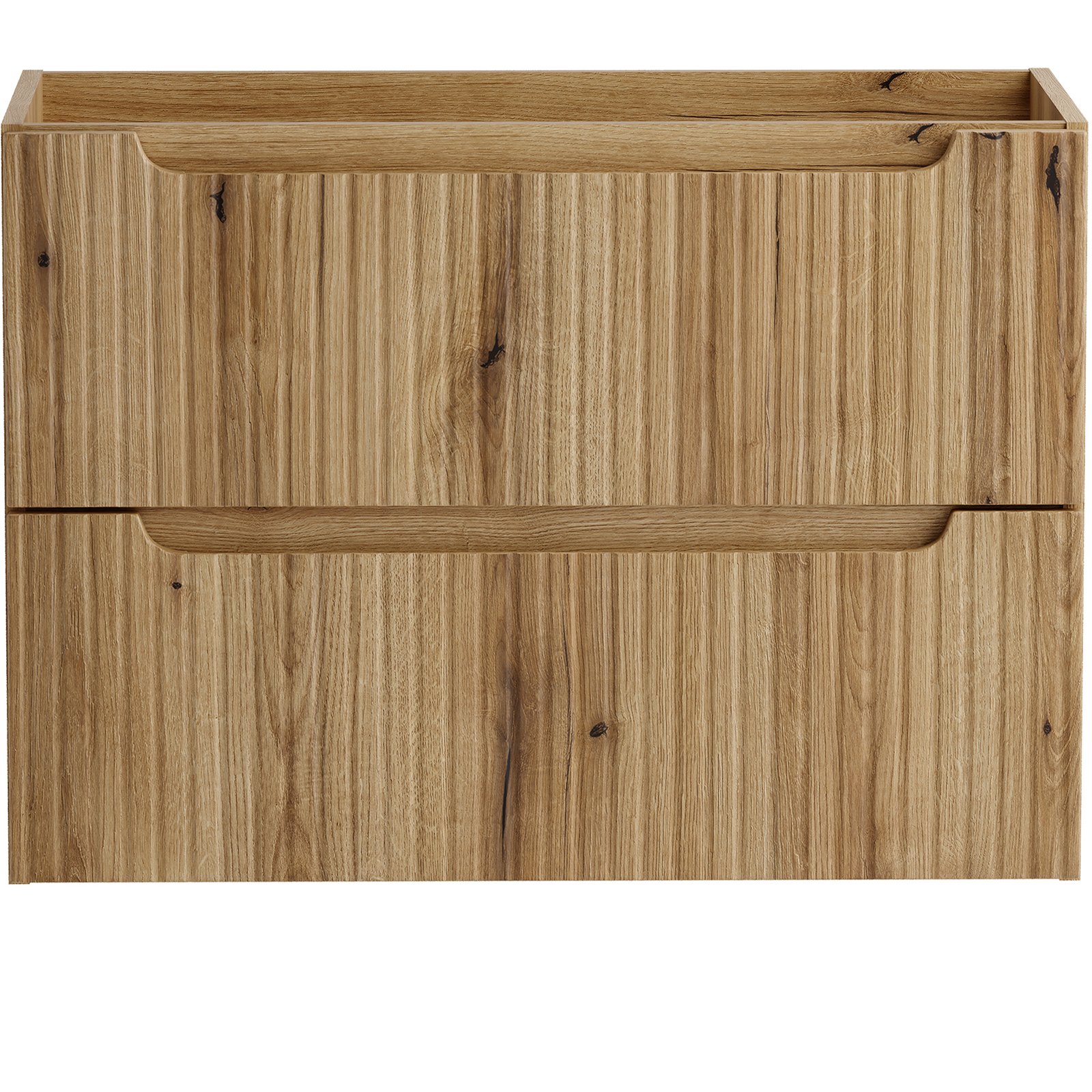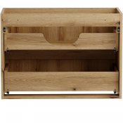 Szafka pod umywalkę 80 cm z dwiema szufladami z kolekcji Nova Coast Evoke przyciąga wzrok eleganckim minimalizmem. Ciepły odcień i naturalna struktura dekoru Dąb Coast Evoke sprawiają, że wnętrze nabiera miękkiego, przytulnego charakteru. Kompatybilność z pozostałymi seriami Nova – w kolorach kaszmiru, bieli, czerni oraz niebieskiego Denimu – pozwala na pełną swobodę aranżacyjną i tworzenie spójnych, ale niepowtarzalnych przestrzeni. Dwie pojemne szuflady oferują sporo miejsca do przechowywania akcesoriów łazienkowych, pomagając utrzymać porządek.