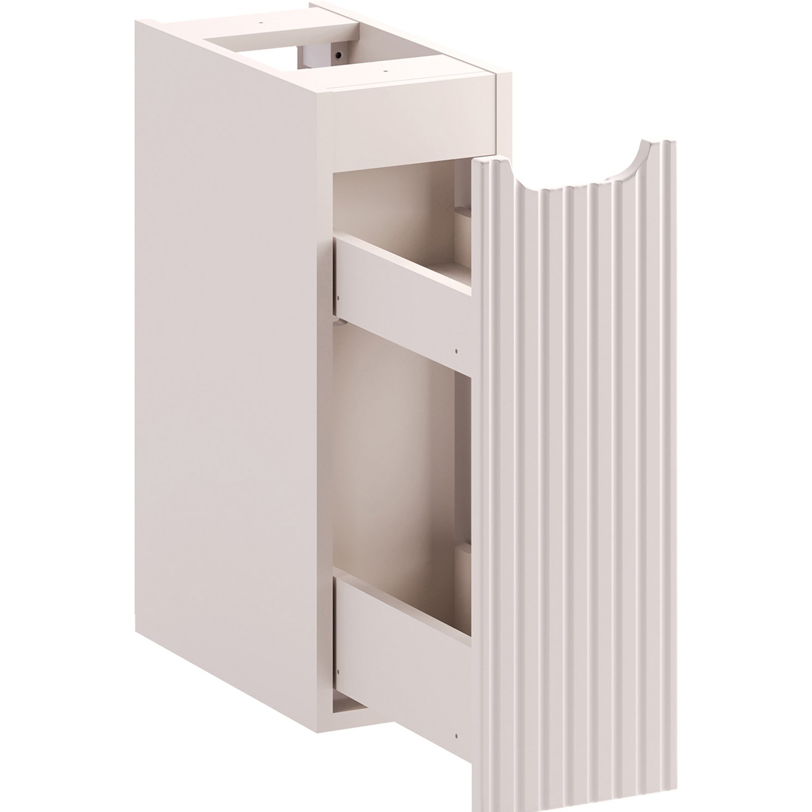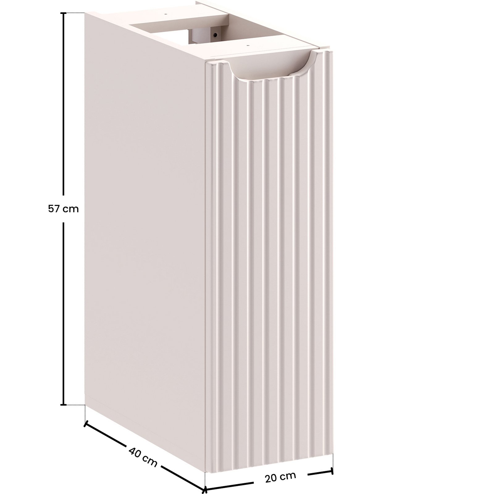 Szafka dolna Cargo o szerokości 20 cm z kolekcji Nova Cashmere przyciąga wzrok eleganckim minimalizmem. Delikatny dekor Kaszmirowy Beż wprowadza do wnętrza ciepłą atmosferę. Kompatybilność z pozostałymi seriami Nova – w dekorach dębu Coast Evoke, bieli, czerni oraz niebieskiego Denimu – pozwala na pełną swobodę aranżacyjną i tworzenie spójnych, ale niepowtarzalnych przestrzeni.