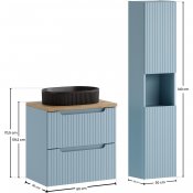 Zestaw mebli szafka z blatem NOVA OAK 60 cm, słupek, umywalka BEYOND BLACK