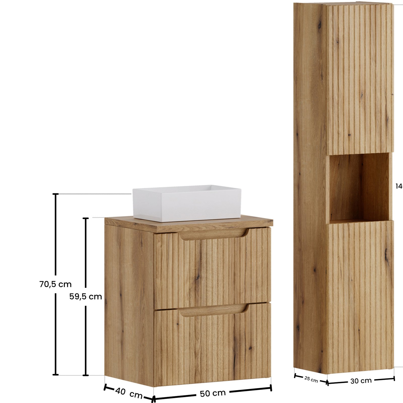 Zestaw mebli NOVA COAST EVOKE szafka z blatem NOVA OAK 50 cm, umywalka GAJA, słupek 30 cm