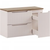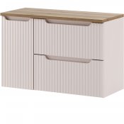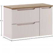 Szafki o łącznej szerokości 90 cm z kolekcji Nova Cashmere przyciąga wzrok eleganckim minimalizmem. Delikatny dekor Kaszmirowy Beż wprowadza do wnętrza łagodną, ciepłą atmosferę.
