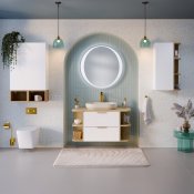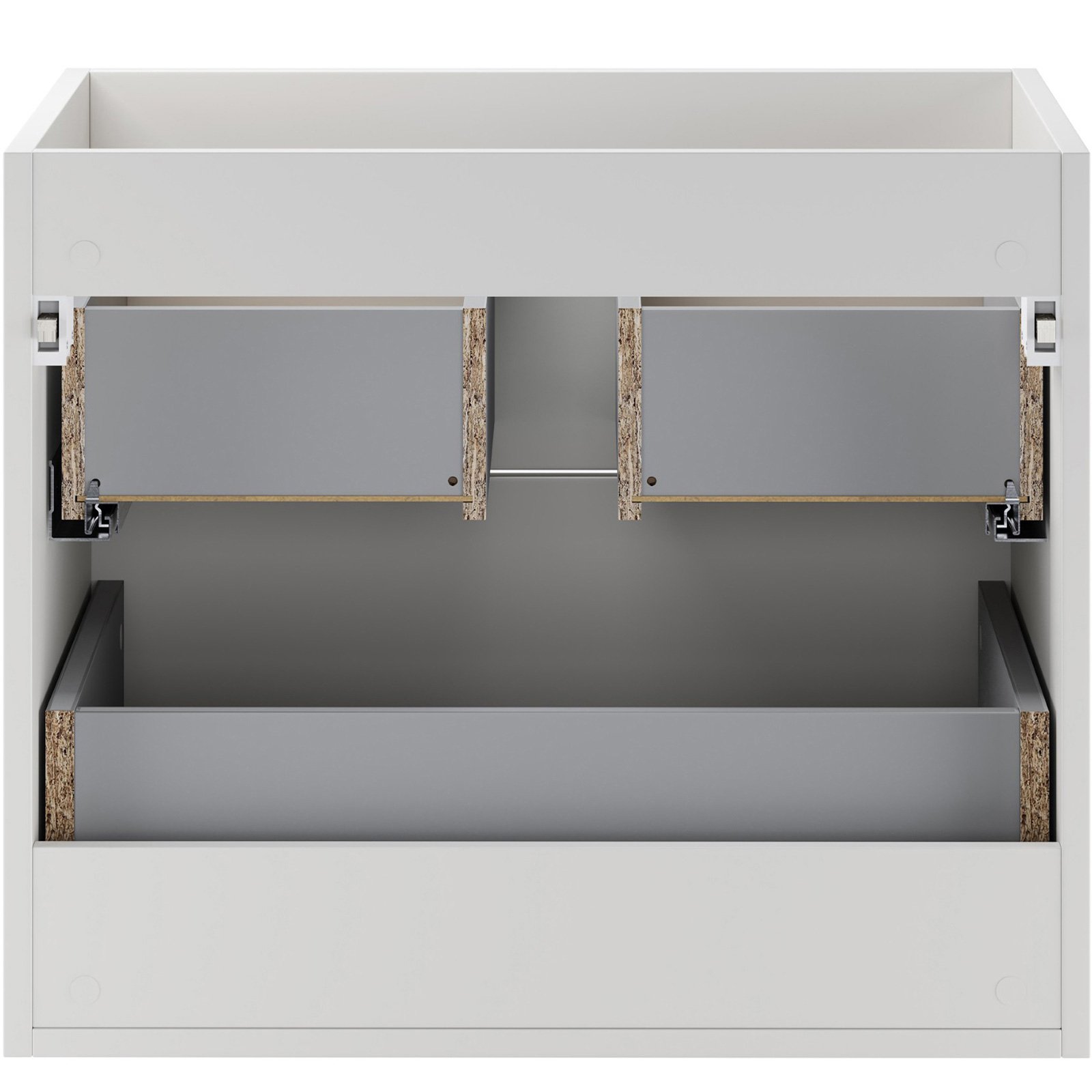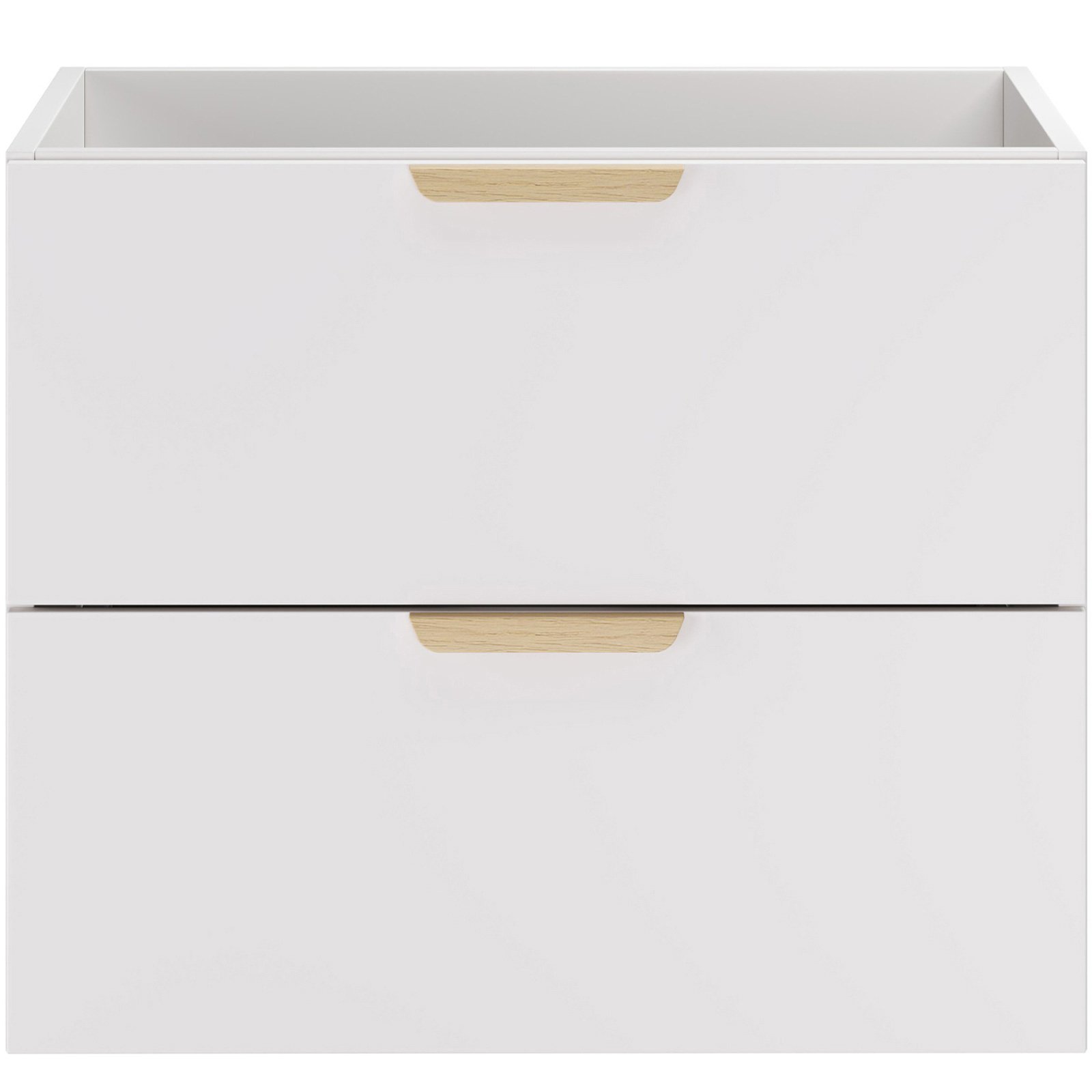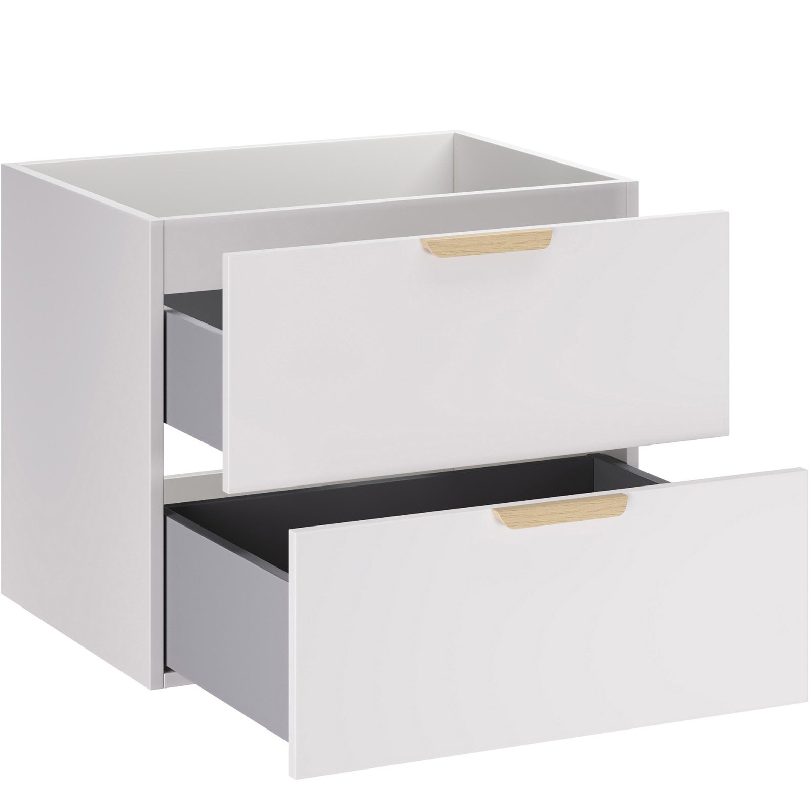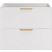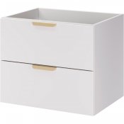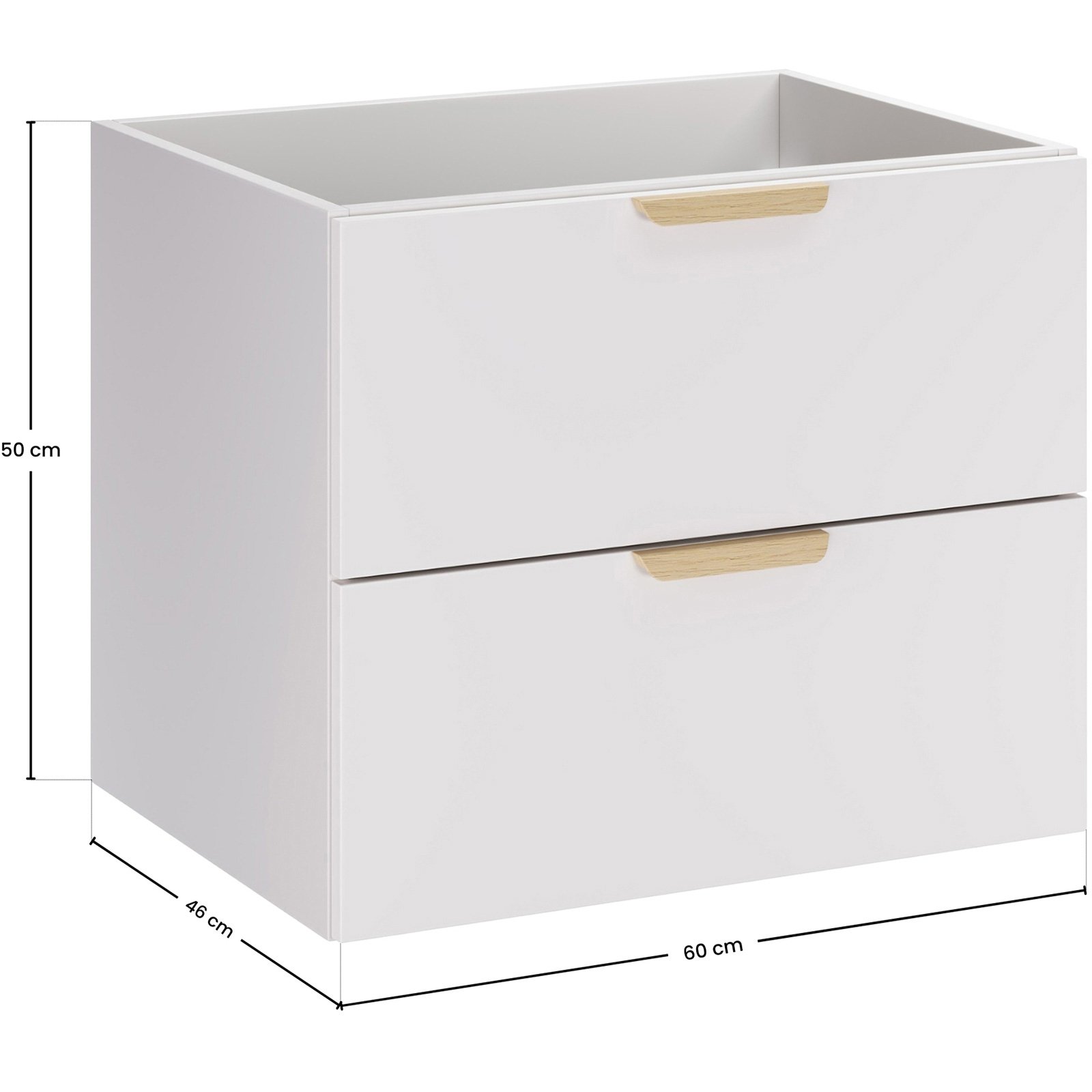 Dwie pojemne szuflady zapewniają wygodne miejsce do przechowywania akcesoriów łazienkowych, pomagając zachować porządek na co dzień. Szafka o głębokości 46 cm i wysokości 50 cm łączy funkcjonalność z wizualną lekkością. Komfort użytkowania dodatkowo zwiększa system cichego domykania.