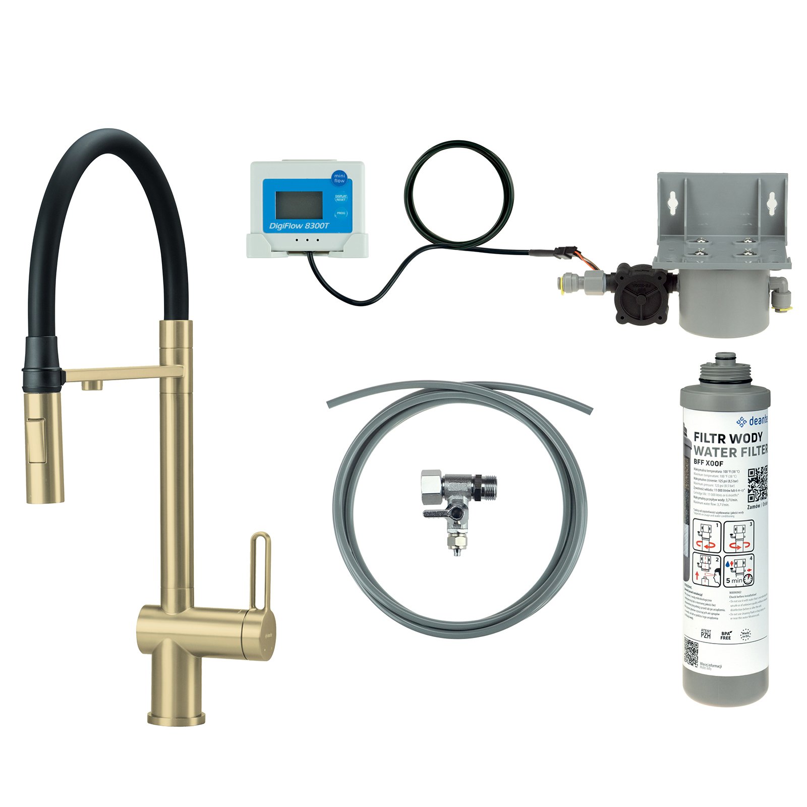Bateria kuchenna MAGNETIC z zestawem do filtracji złoty szczotkowany