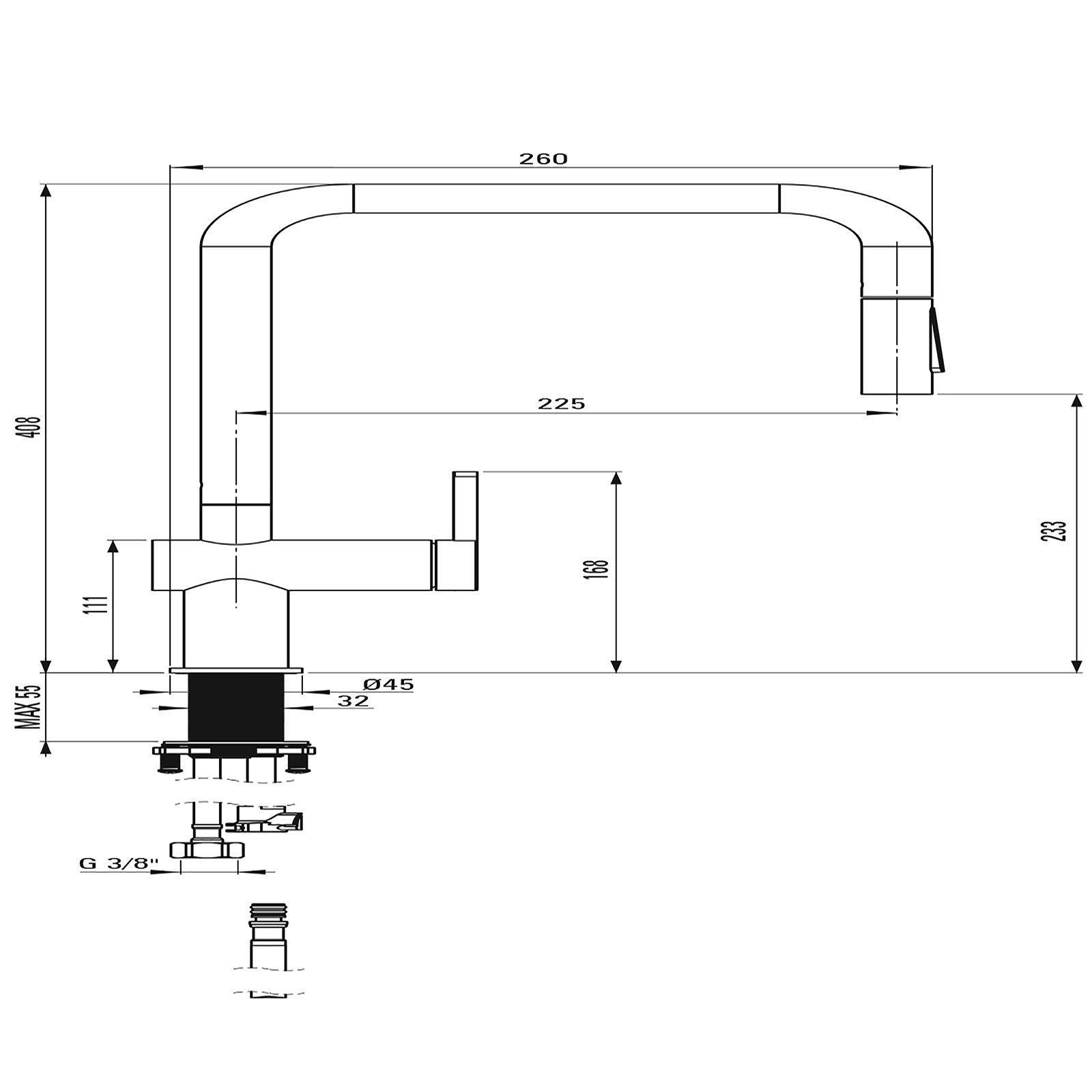- rodzaj wylewki: obrotowa, wyciągana
