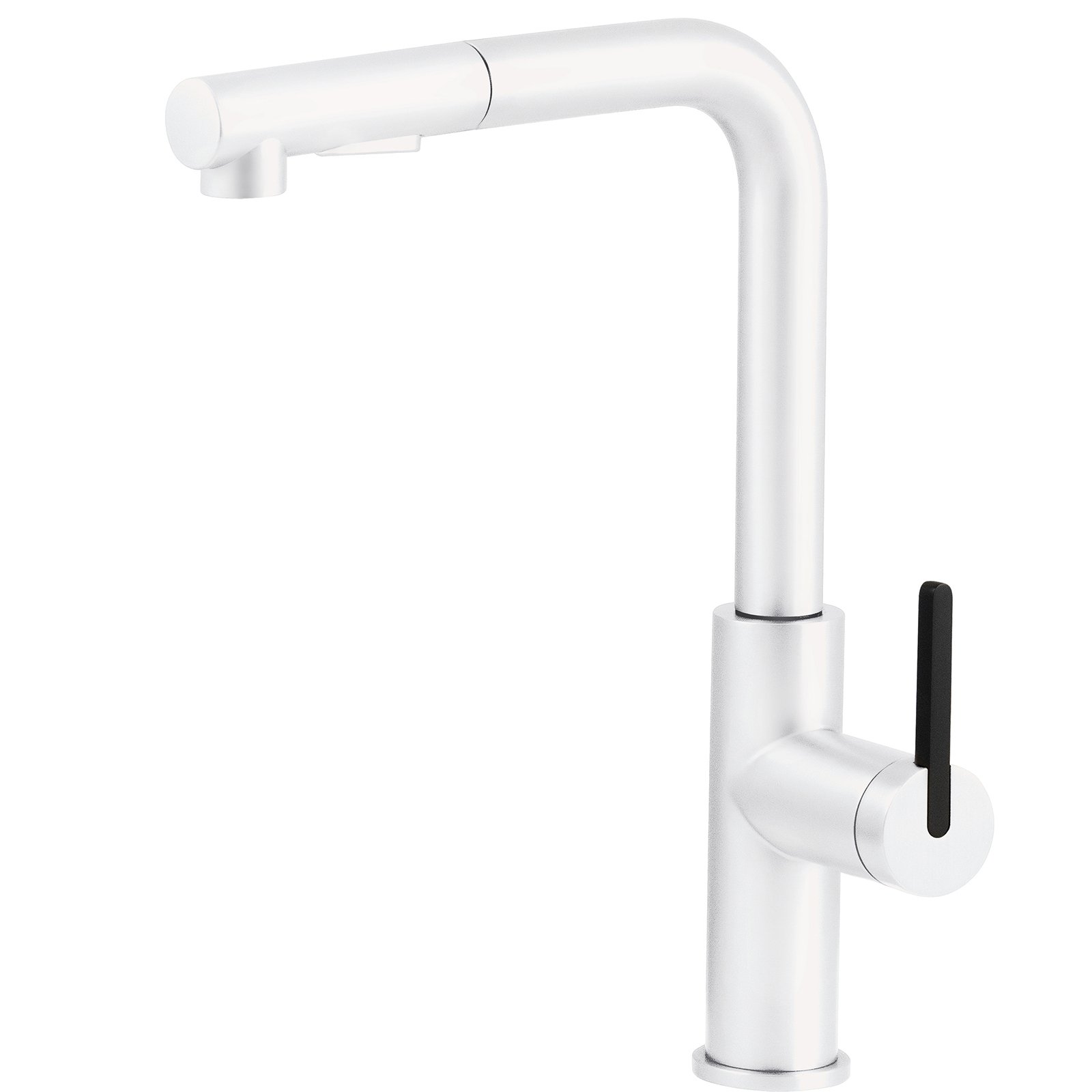 Bateria Momi, stworzona z najwyższej jakości stali nierdzewnej, zachwyca swoim nowoczesnym, prostokątnym kształtem wylewki, która nadaje jej wyjątkowego charakteru. Wyciągana wylewka zapewnia pełną swobodę ruchu, ułatwiając codzienne prace w kuchni, także te wymagające sięgnięcia w trudno dostępne miejsca. Do dyspozycji są dwa rodzaje strumienia – delikatny, napowietrzony idealny do mycia oraz miękki, deszczowy, perfekcyjny do płukania warzyw i owoców. Całość dopełnia eleganckie, matowe białe wykończenie, które wprowadza do kuchni subtelną elegancję i nowoczesną lekkość. .