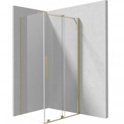 Kabina PRIZMA to synonim stylu i funkcjonalności, łączący wygodę przesuwnego walk-in ze ścianką prysznicową, które razem tworzą harmonijną całość. Wykonana z trwałego, transparentnego szkła hartowanego i wykończona w błyszczącym złotym kolorze, stanowi elegancki akcent w nowoczesnej łazience.