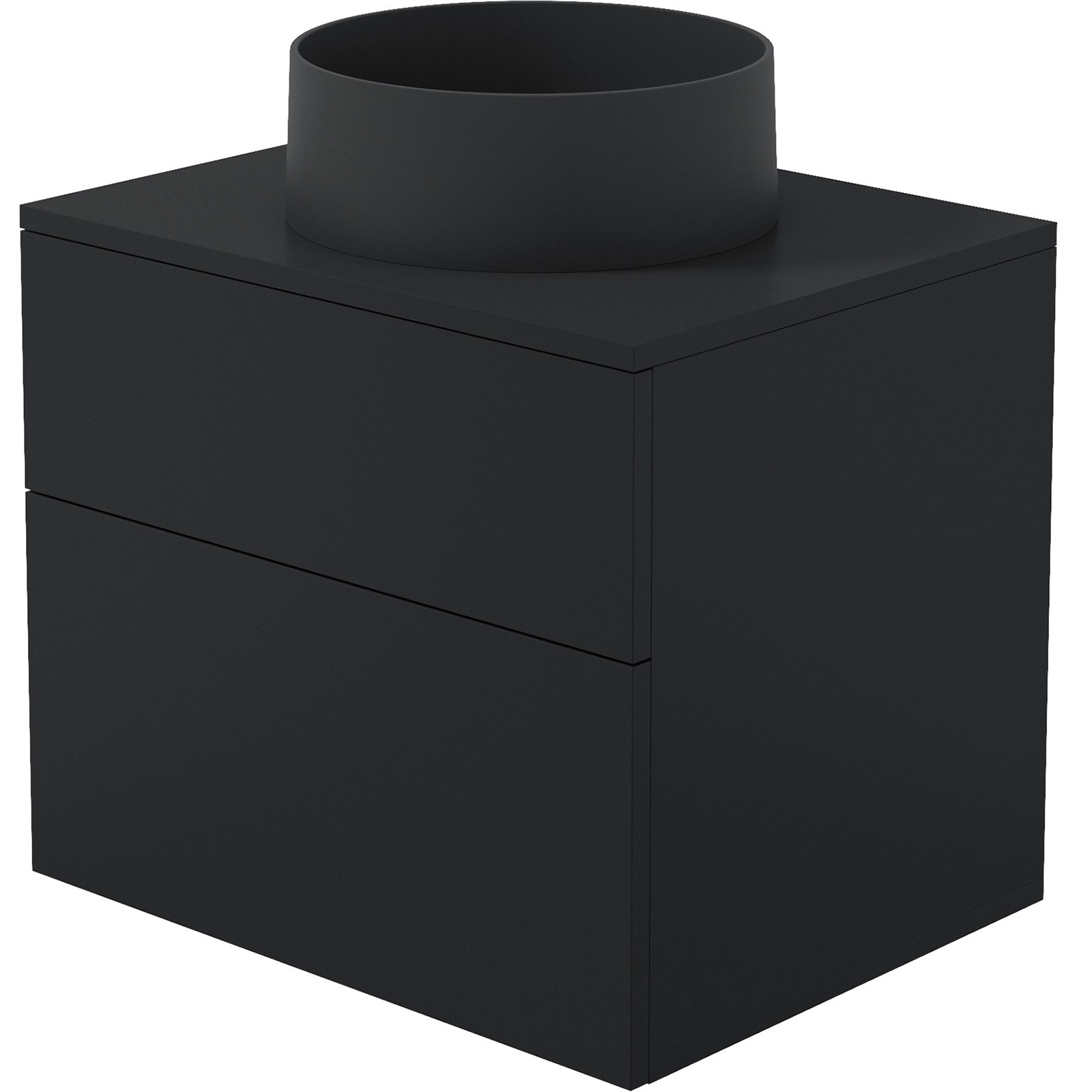 Zestaw łazienkowy łączy w sobie okrągłą umywalkę granitową Silia w głębokim czarnym kolorze oraz szafkę Prizma wykończoną w matowej czerni, tworząc spójną i nowoczesną kompozycję. Ta połączenie barw tworzy elegancką, minimalistyczną przestrzeń, która doskonale sprawdzi się zarówno w większych, jak i mniejszych łazienkach. Umywalka zachwyca gładką powierzchnią bez przelewu, co ułatwia utrzymanie jej w czystości. Szafka w matowej czerni harmonijnie współgra z granitową umywalką, podkreślając nowoczesny charakter zestawu. Dwie pojemne szuflady z pełnym wysuwem i cichym domykiem zapewniają komfort codziennego użytkowania, a system push to open akcentuje innowacyjny styl mebla. Blat z otworem na syfon został perfekcyjnie dopasowany do umywalki, tworząc jednolitą i elegancką całość.