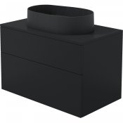 Zestaw łazienkowy łączy w sobie owalną umywalkę granitową Silia w głębokim czarnym kolorze oraz szafkę Prizma wykończoną w matowej czerni, tworząc spójną i nowoczesną kompozycję. To połączenie barw nadaje przestrzeni elegancki, minimalistyczny charakter, który doskonale sprawdzi się zarówno w większych, jak i mniejszych łazienkach. Umywalka zachwyca gładką powierzchnią bez przelewu, co ułatwia utrzymanie jej w czystości Szafka w matowej czerni harmonijnie współgra z granitową umywalką, podkreślając nowoczesny styl zestawu. Dwie pojemne szuflady z pełnym wysuwem i cichym domykiem zapewniają komfort codziennego użytkowania, a system push to open akcentuje innowacyjny charakter mebla. Blat z otworem na syfon został perfekcyjnie dopasowany do umywalki, tworząc jednolitą i elegancką całość.
