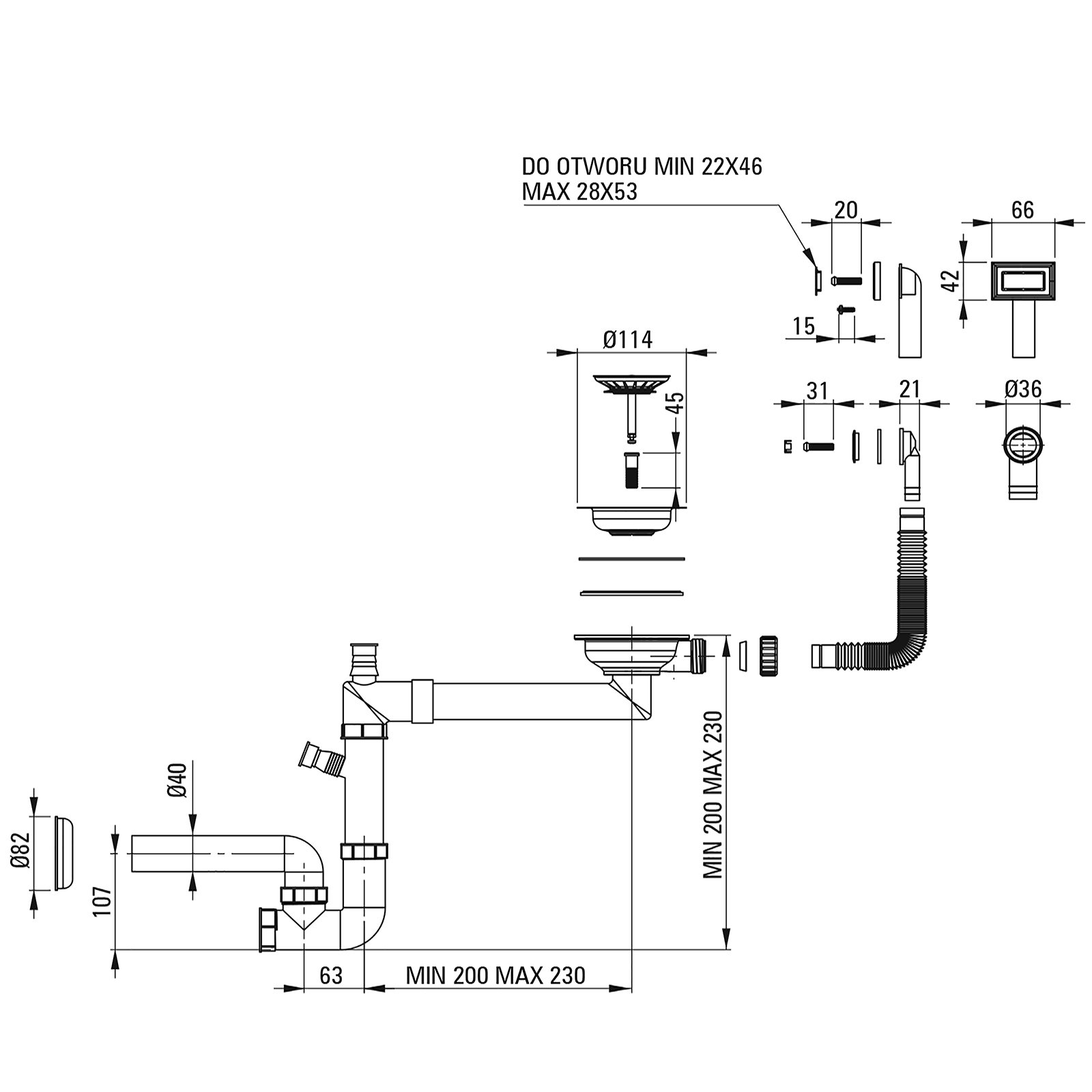 Syfon do 1-komorowych zlewozmywaków granitowych, stalowych oraz ceramicznych (ZCU_610A, ZCU_610B, ZCU_610D, ZCB_610H) to idealne rozwiązanie do każdej nowoczesnej kuchni. W zestawie znajduje się manualny korek oraz dwa rodzaje przelewów: okrągły i prostokątny, oba z zaślepkami. Model Space-saver został zaprojektowany tak, aby zajmować minimalną ilość miejsca w szafce pod zlewozmywakiem, co pozwala na efektywne zagospodarowanie przestrzeni. Wykończenie w kolorze brązu szczotkowanego doskonale komponuje się z kuchennymi bateriami w tym samym kolorze, dodając elegancji i stylu każdej kuchni.