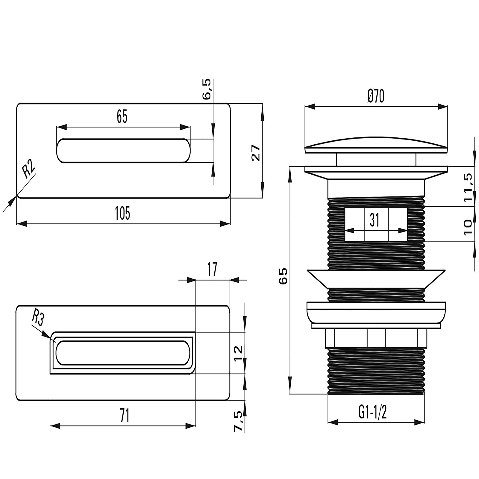rodzaj: click-clack kształt: okrągły wykończenie: brąz szczotkowany
