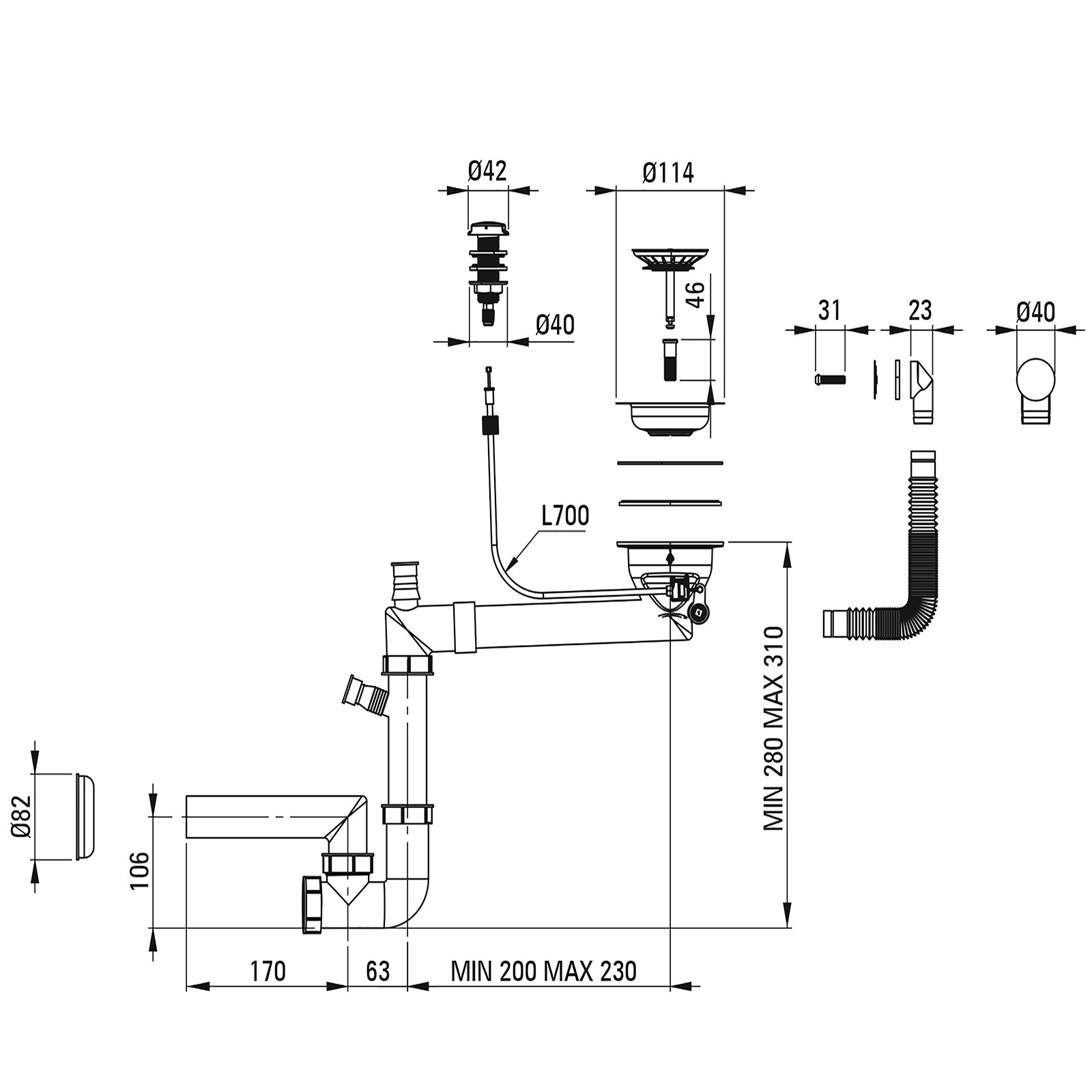 Syfon oszczędzający miejsce Space-saver ułatwiający m.in. segregację śmieci