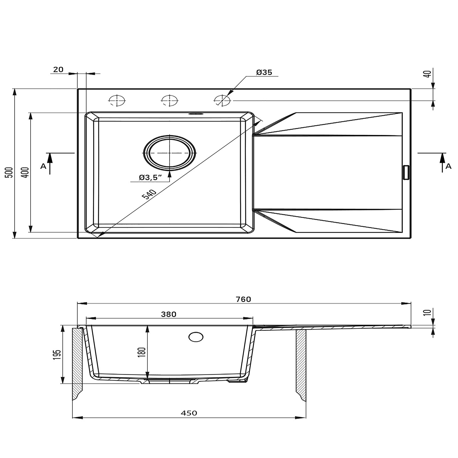 Materiał: granit Rodzaj korka: automatyczny Wykończenie: alabaster Długość : 76cm Wysokość: 19,5cm Sposób montażu: wpuszczany Szerokość : 50cm Rodzaj powierzchni: mat Ilość komór zlewozmywaka: 1 Minimalna szerokość szafki: 45cm
