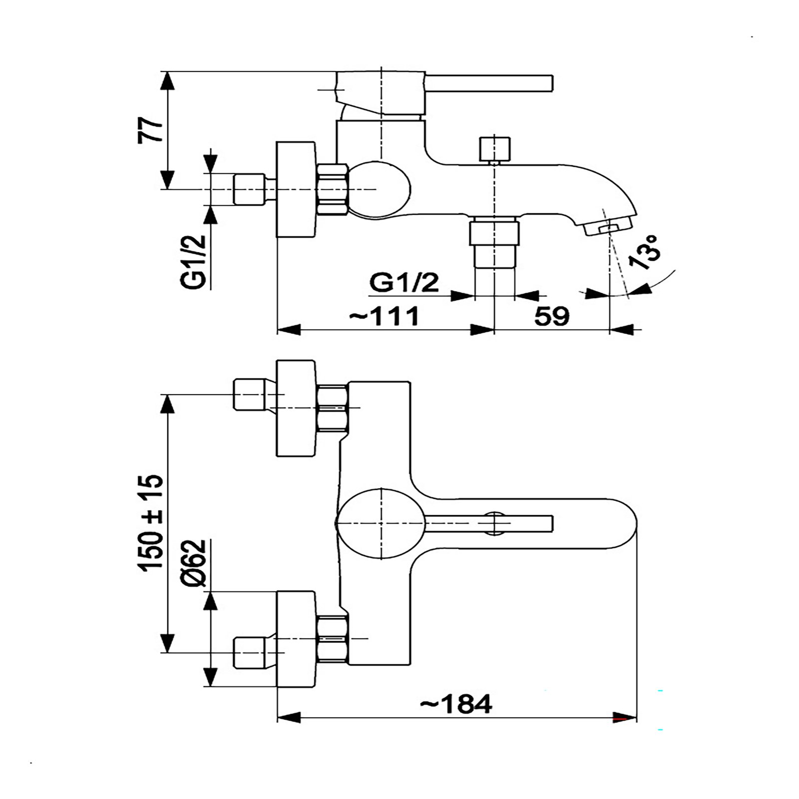 - Rozstaw przyłączy [mm]: 150 ± 15