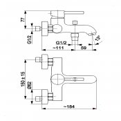 Bateria wannowa ścienna MOZA gun metal grey PVD.