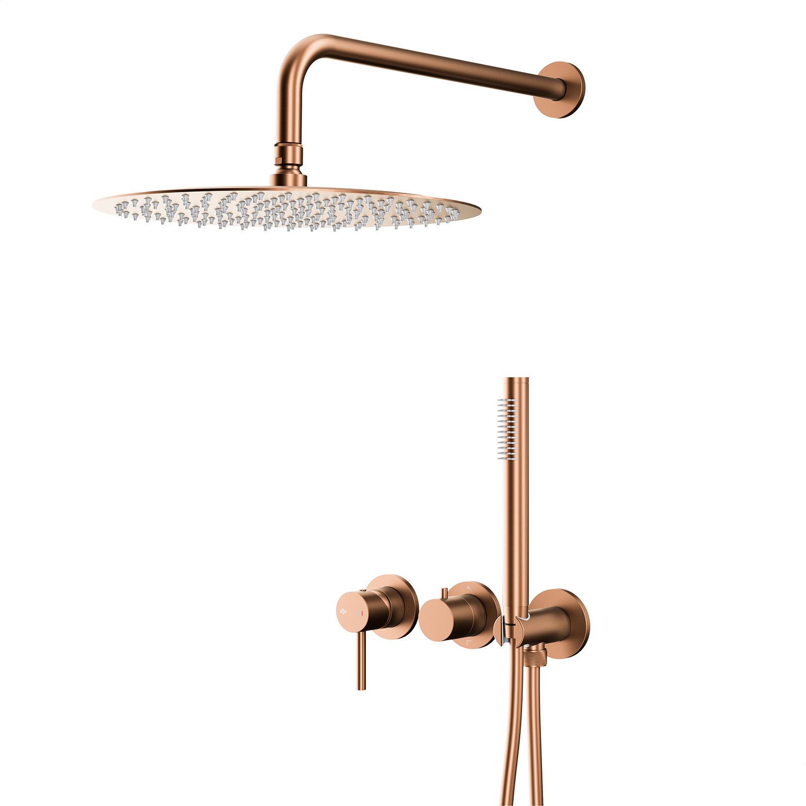 Zestaw prysznicowy MOZA podtynkowy z baterią 3-otworową 2-funkcyjną różowy złoty szczotkowany.
