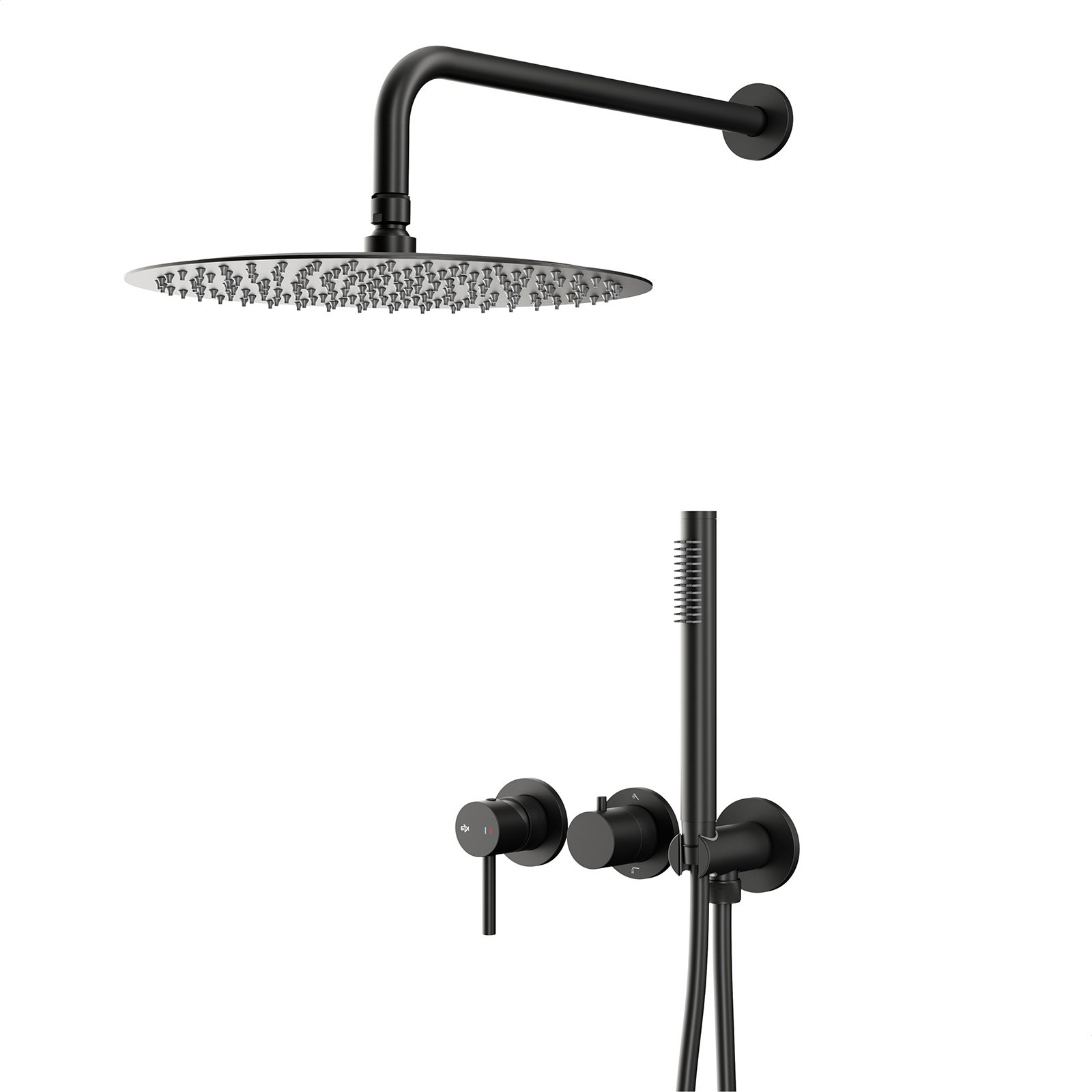 Zestaw prysznicowy MOZA podtynkowy z baterią 3-otworową 2-funkcyjną czarny.