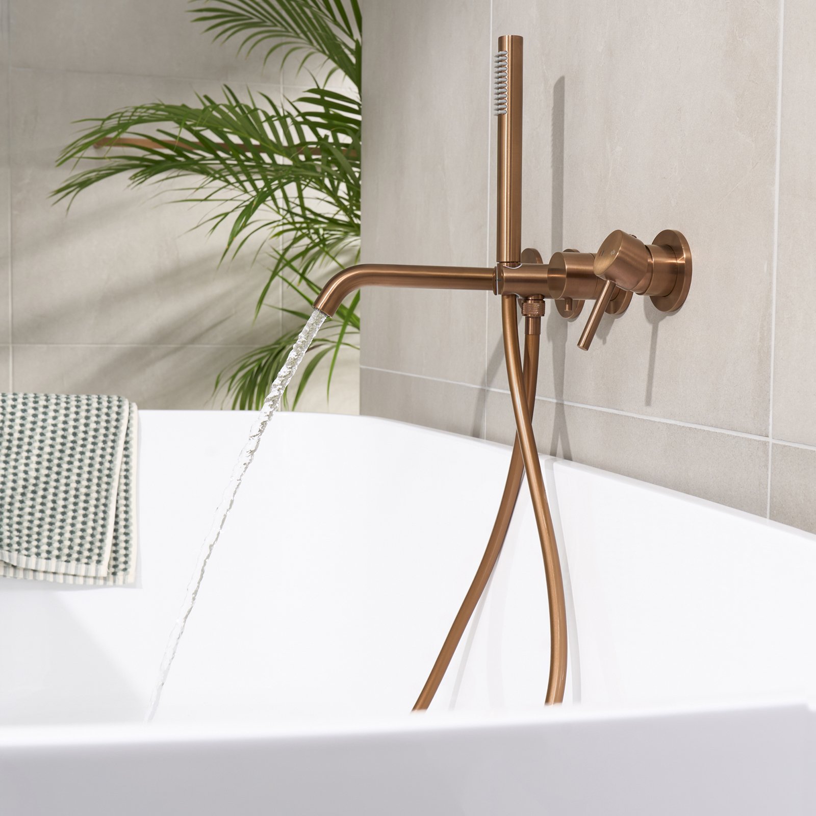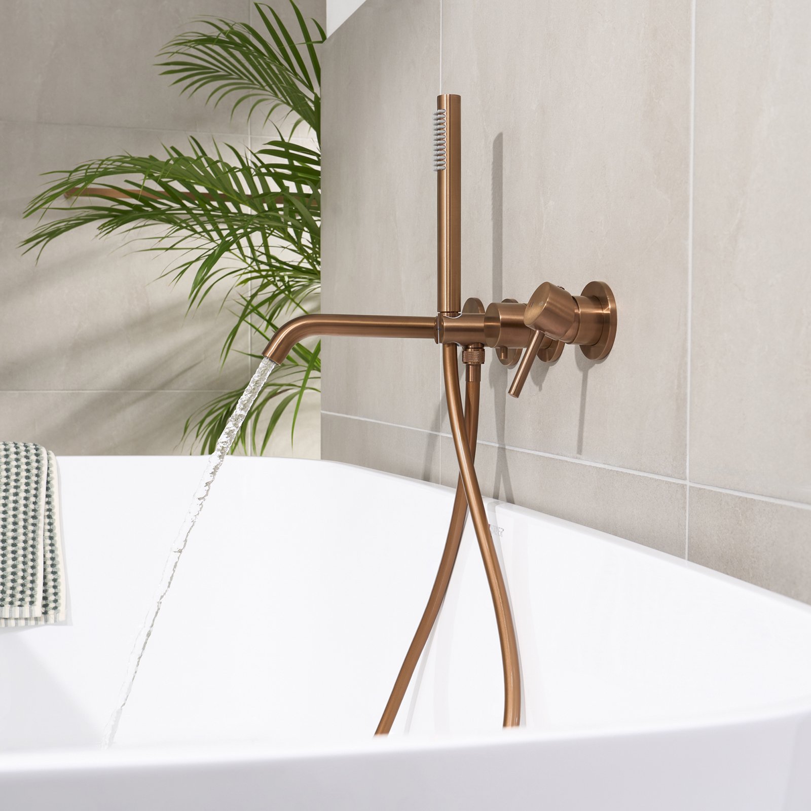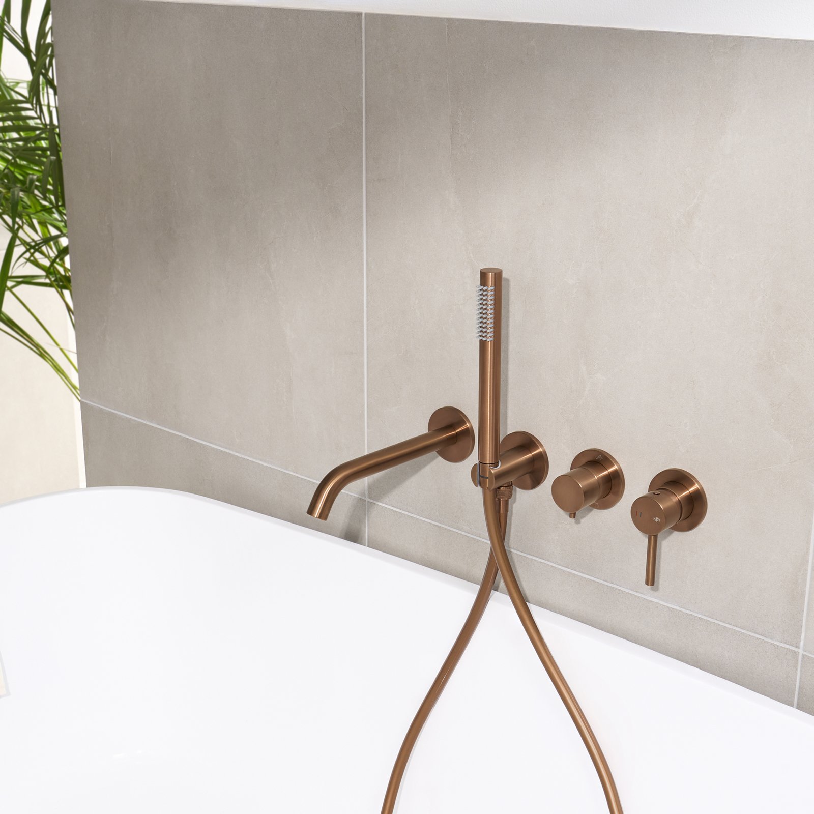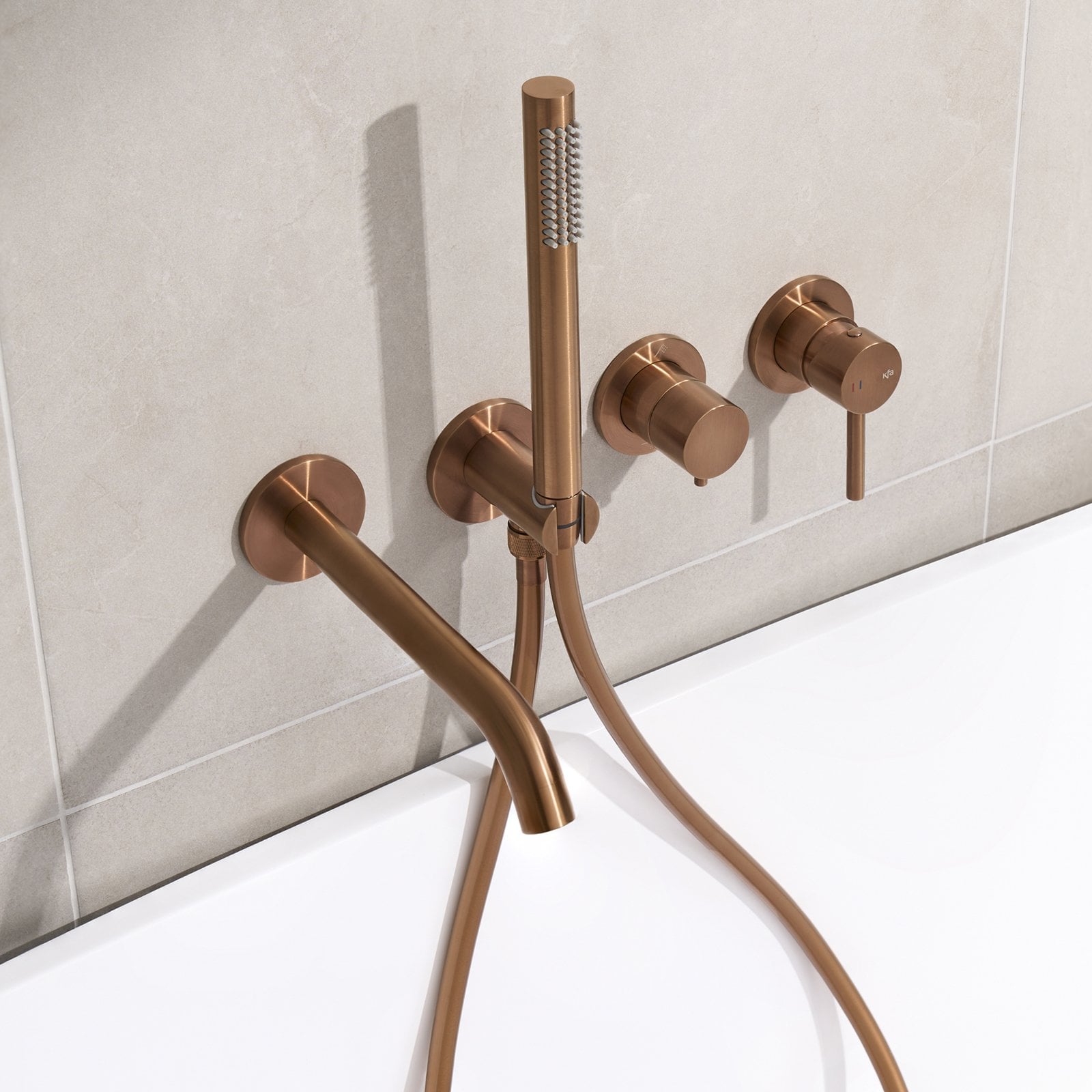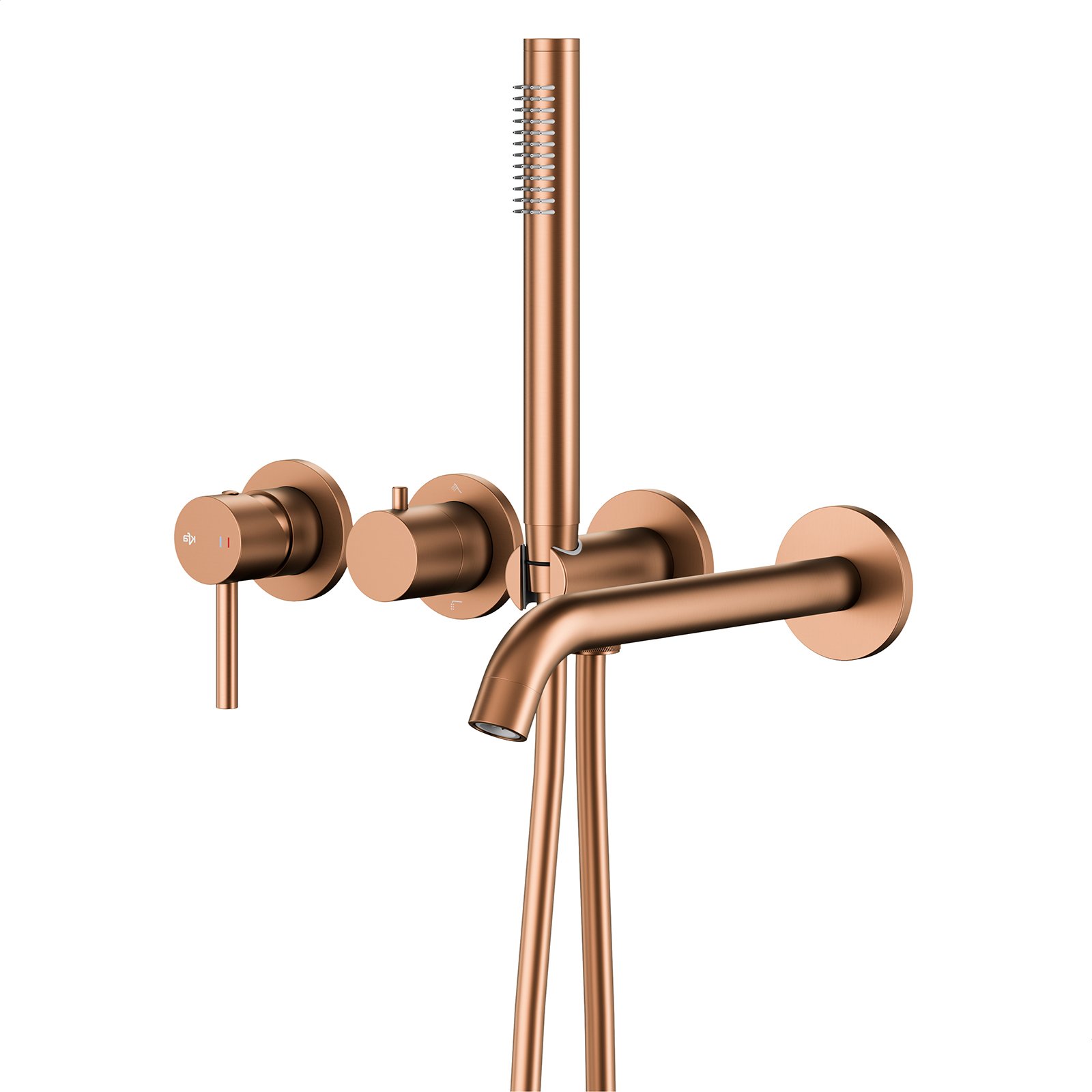 Zestaw wannowy MOZA podtynkowy z baterią 3-otworową 2-funkcyjną różowy złoty szczotkowany.