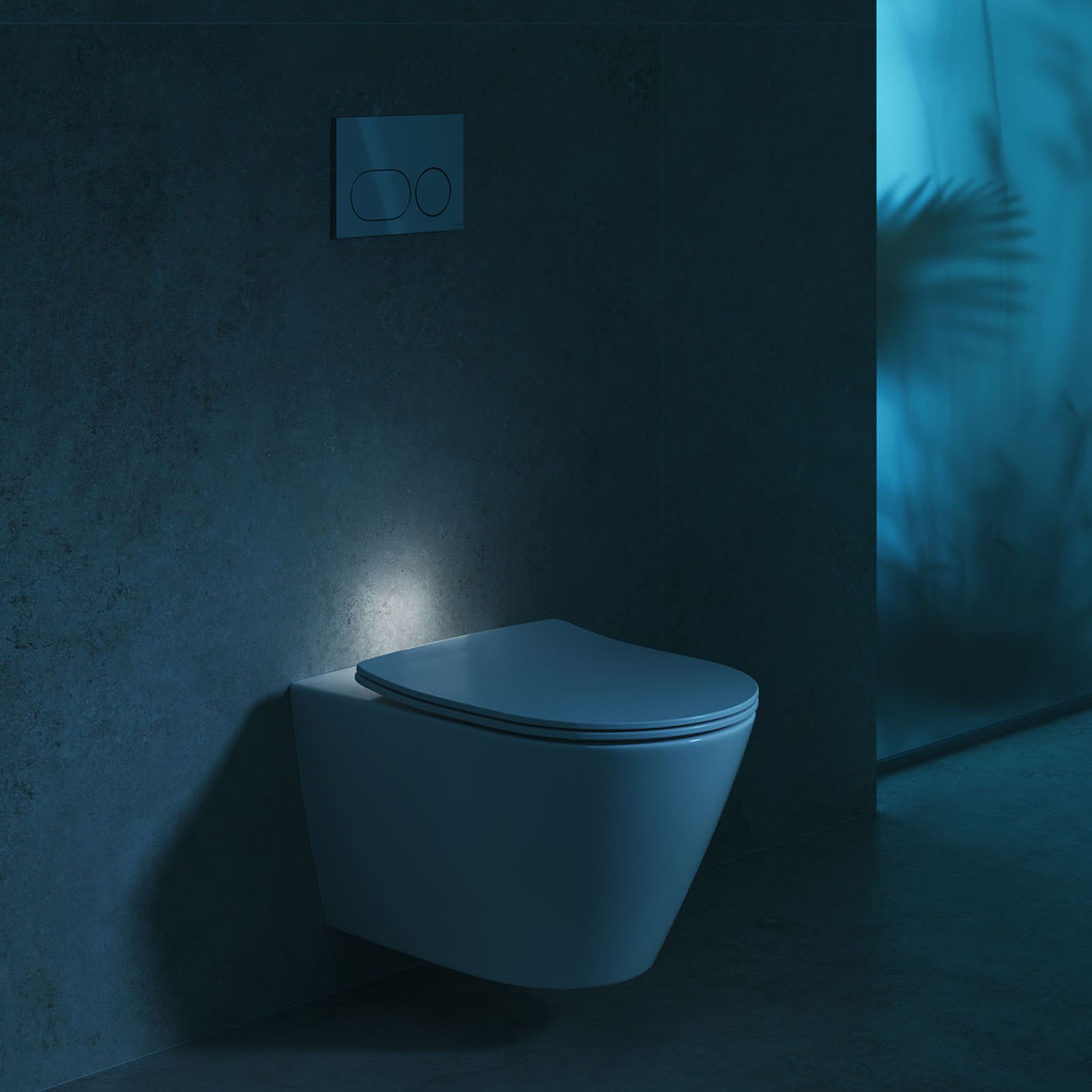 MOONWAY SPOT to nowoczesna deska toaletowa z inteligentnym podświetleniem LED, zaprojektowana z myślą o wygodzie i bezpieczeństwie codziennego użytkowania – szczególnie nocą. Delikatne, nierażące światło automatycznie uruchamia się dzięki wbudowanemu sensorowi zmierzchu i dźwięku, umożliwiając swobodne korzystanie z toalety bez konieczności włączania głównego oświetlenia w łazience.