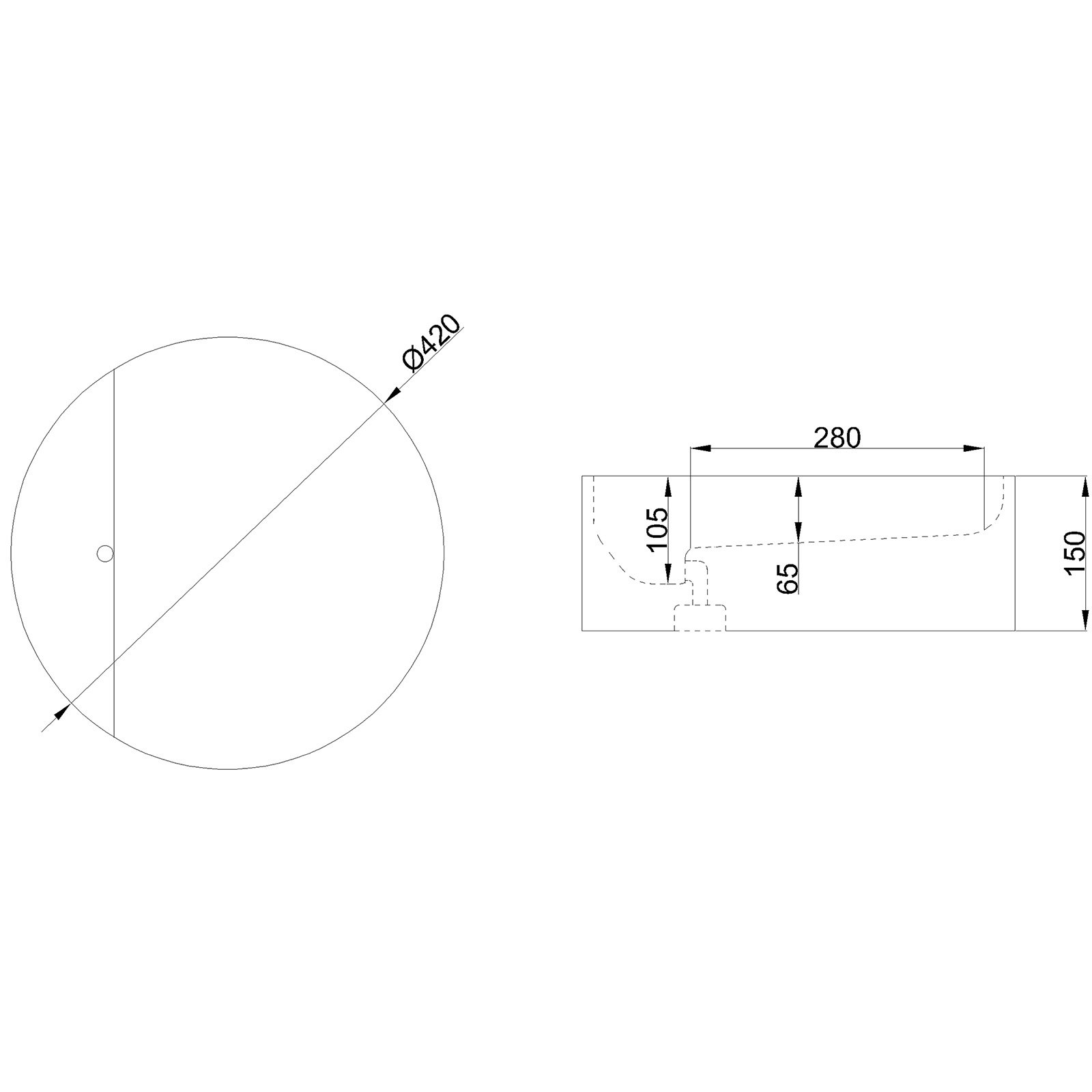Ukryty otwór odpływowy zapewnia czystą, gładką powierzchnię misy, podnosząc walory wizualne i komfort użytkowania. Brak przelewu oraz otworu na baterię podkreśla minimalistyczny charakter umywalki i daje pełną swobodę w doborze baterii wysokiej lub podtynkowej.
