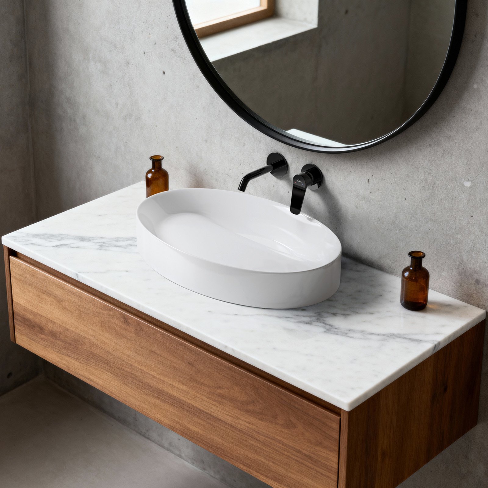 Owalna umywalka nablatowa Elara to najbardziej dekoracyjny model z serii, zaprojektowany z myślą o przestronnych i stylowych łazienkach. Smukła, wydłużona forma przyciąga wzrok i wprowadza do wnętrza wrażenie lekkości oraz nowoczesnej elegancji.