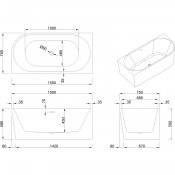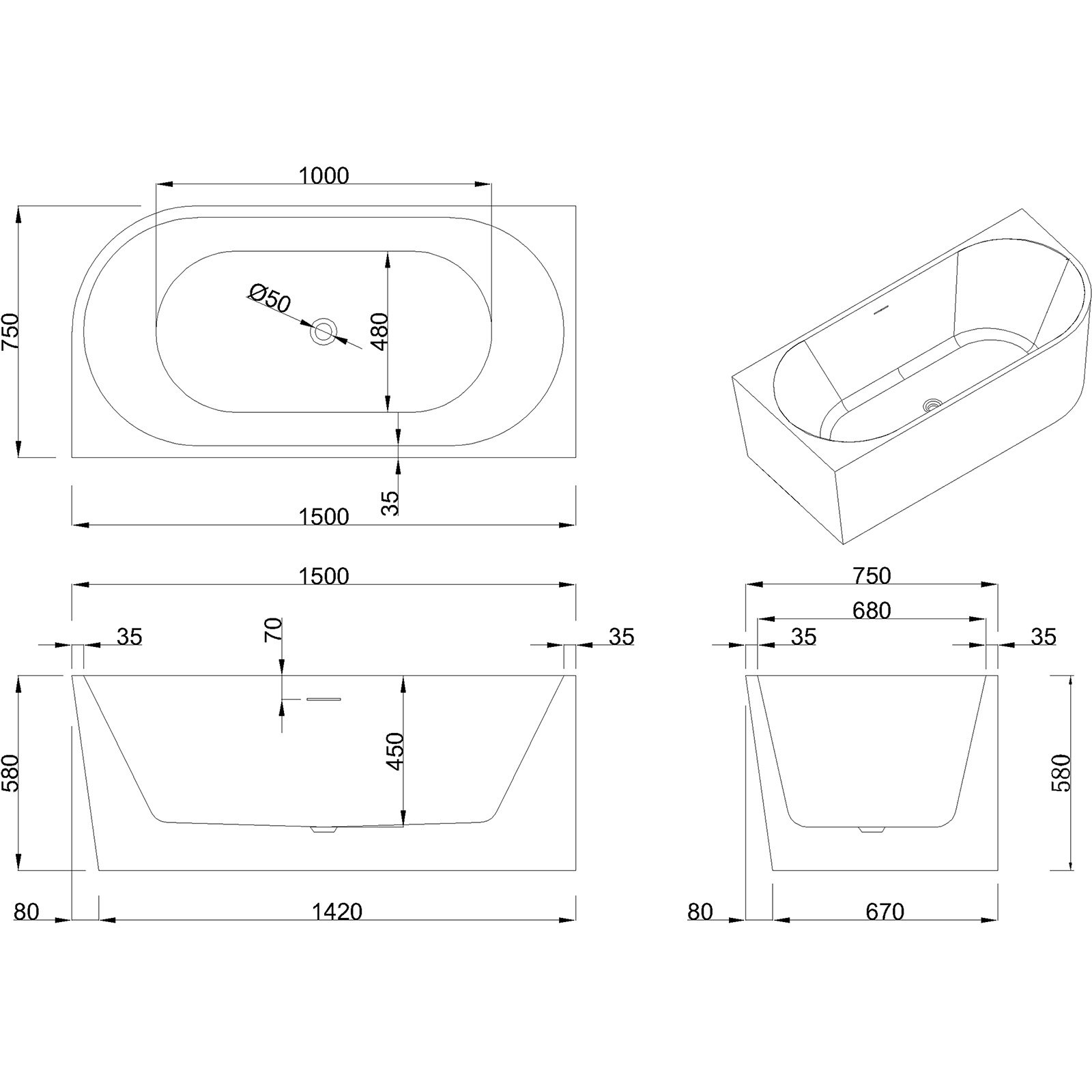Wanna wolnostojąca przyścienna ASTRI 150x75 cm lewa z syfonem